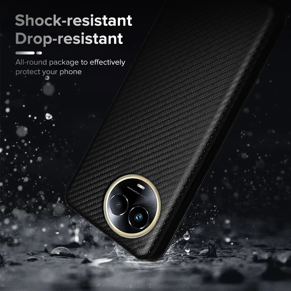 Comprar Funda de cuero con tapa para Realme, carcasa con textura de fibra de carbono, Realme11 Pro Plus 11 Pro, soporte de anillo con ranura para tarjeta, versión Global, 5G