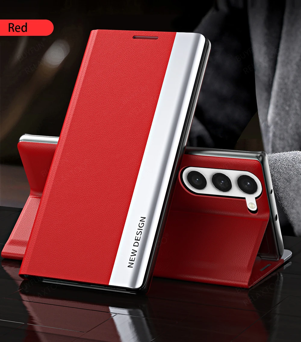 Comprar Funda de cuero con tapa para Samsung Galaxy S24 Ultra, cubierta de teléfono con chapado magnético, SamsungS24 Plus S24Ultra 5G, soporte para libros