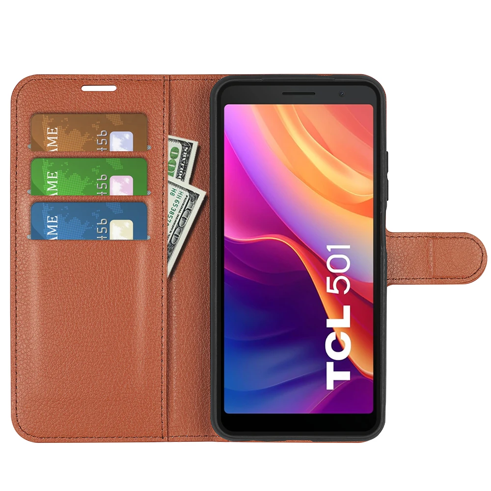 Funda de cuero con tapa para teléfono, carcasa con soporte para TCL 501, 501