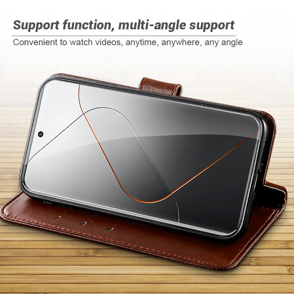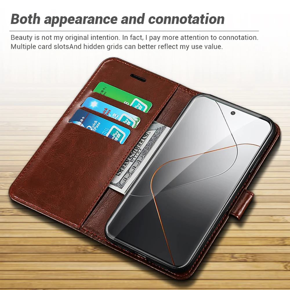 Funda de cuero con tapa tipo billetera con ranura para tarjeta incorporada para Xiaomi 14 Pro 5G soporte magnético libro Coque Xiomi Xiami Xaomi Mi14 Mi 14 Pro M14