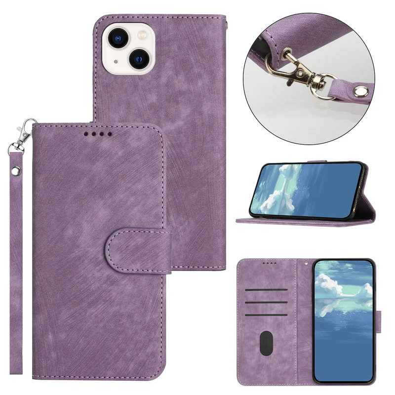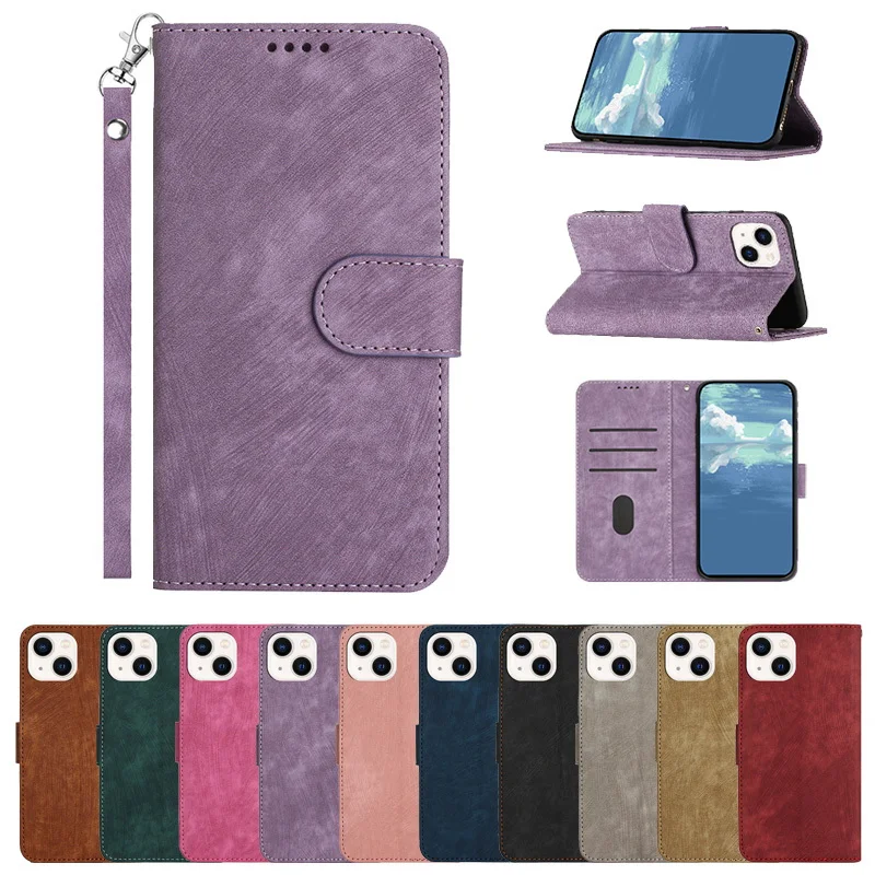 Comprar Funda de cuero con tapa y tarjetero de Color sólido para iPhone 14 Pro Max 13 Pro 12 11 14 Plus, funda trasera de teléfono con protección 360 a prueba de golpes