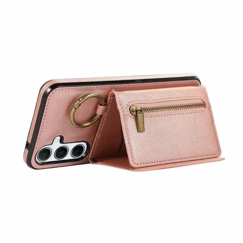 Funda de cuero con tarjetero y cremallera cruzada para Samsung Galaxy S25 S23 Ultra S22 Plus S24 FE S25Ultra, accesorio de cubierta para mujer