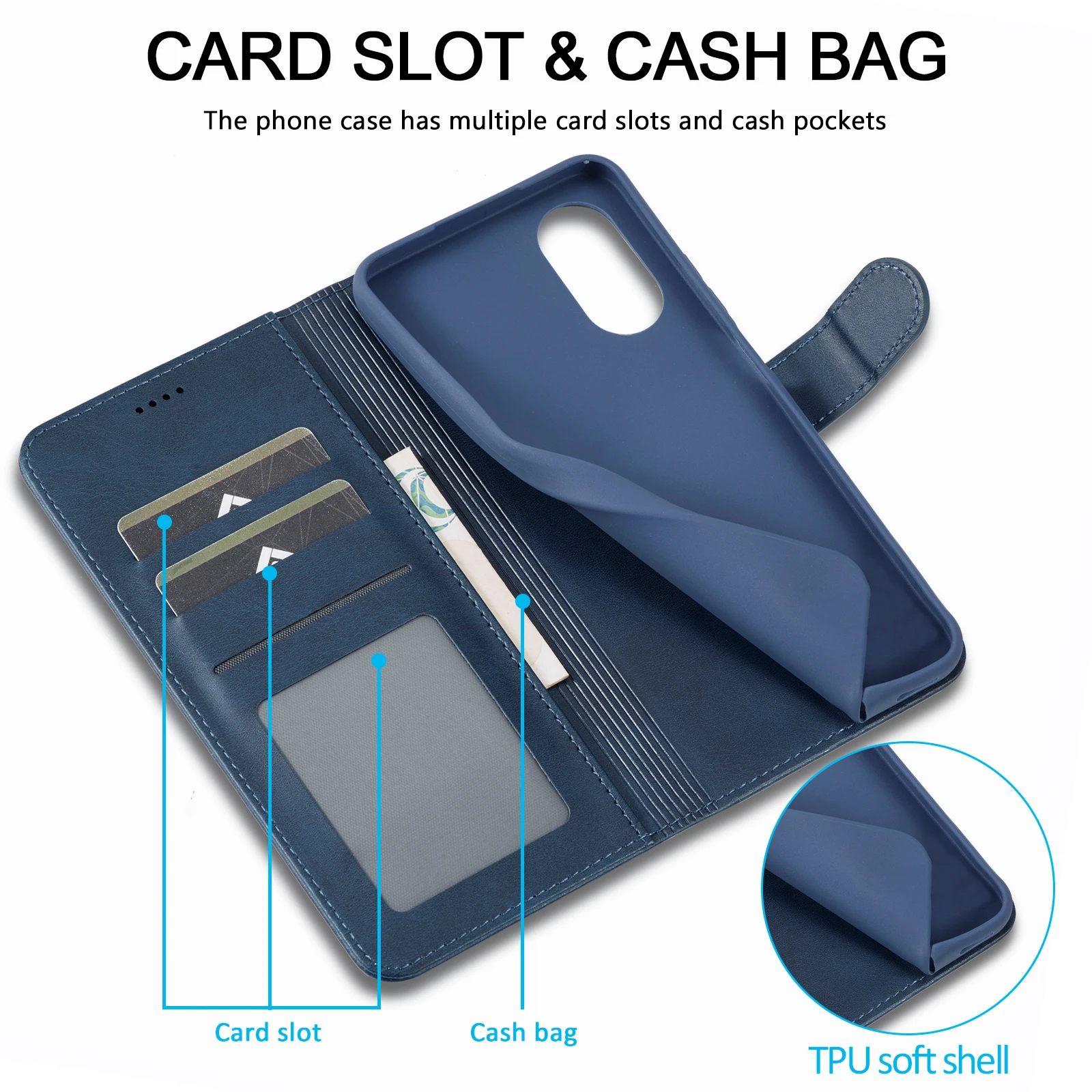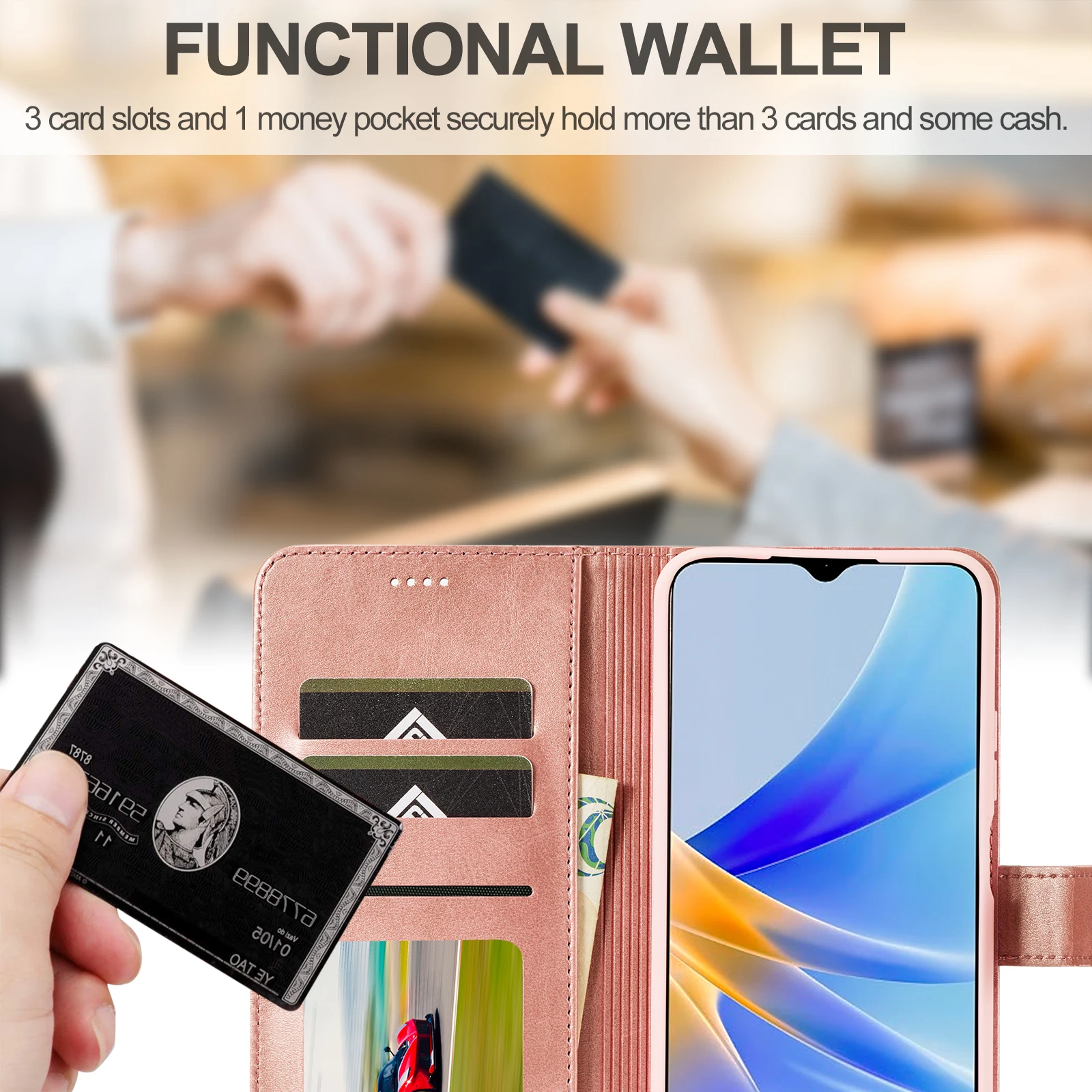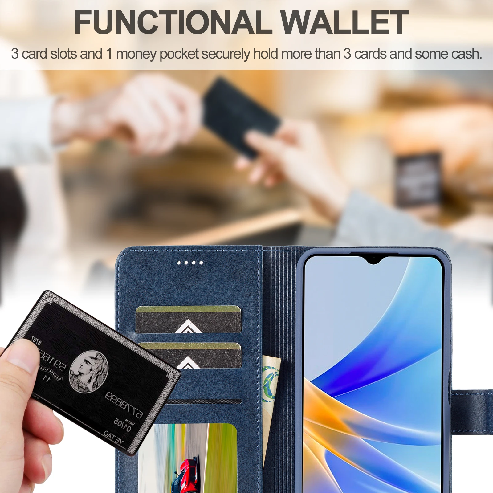 Funda de cuero con tarjetero para OPPO A74 A53 A33 A32 A52 A72 A92 A15 A55 A54 A16 A56 A72 A73 tarjetas Solt bolsa delgada cubierta de libro