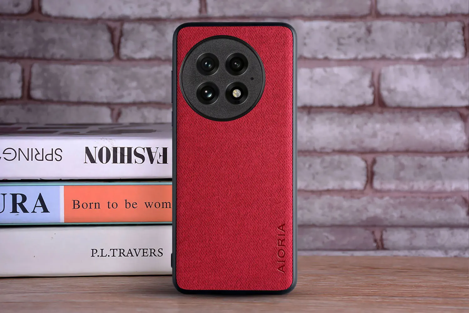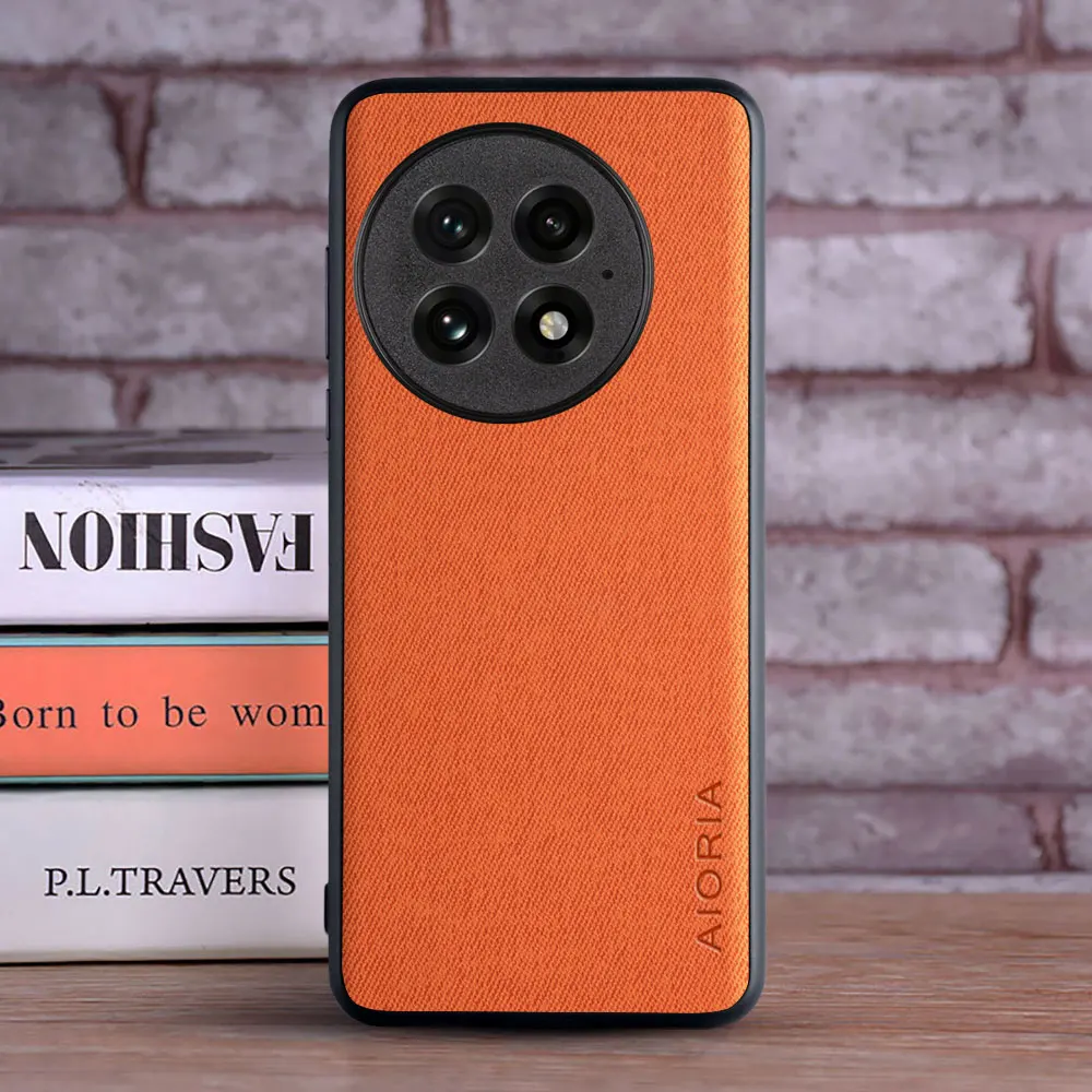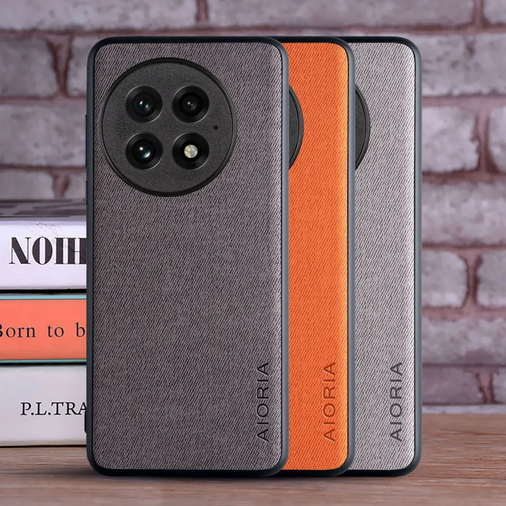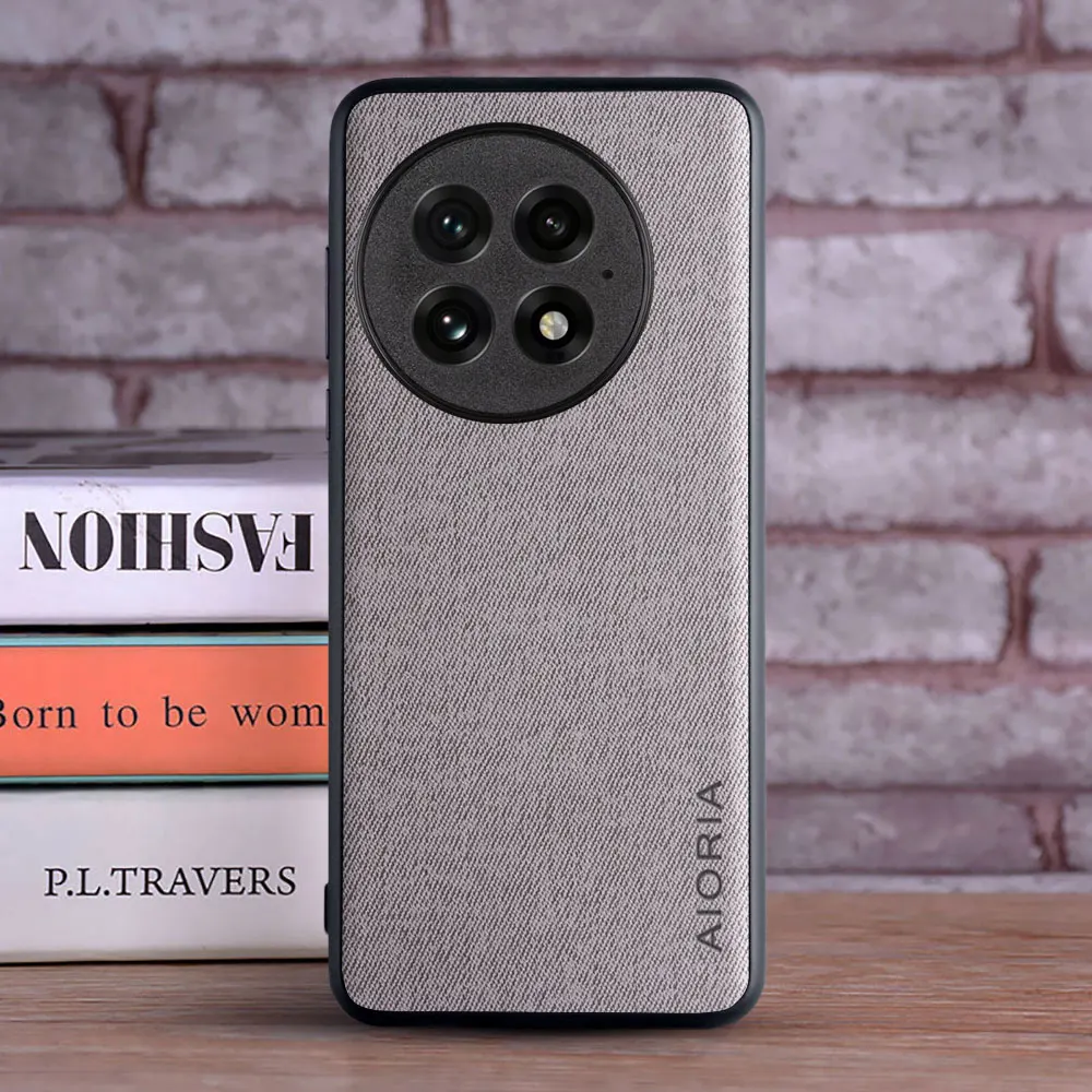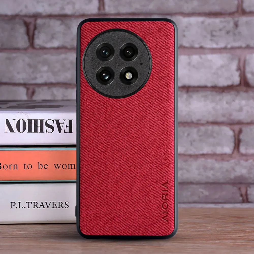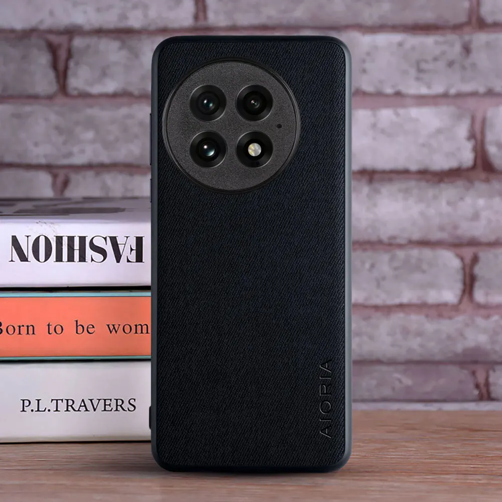 Funda de cuero textil de lujo para OnePlus 13 TPU con PC duro 3 en 1 protección de material Funda OnePlus 13
