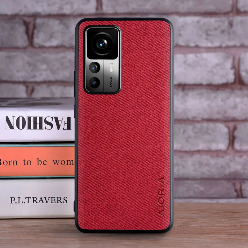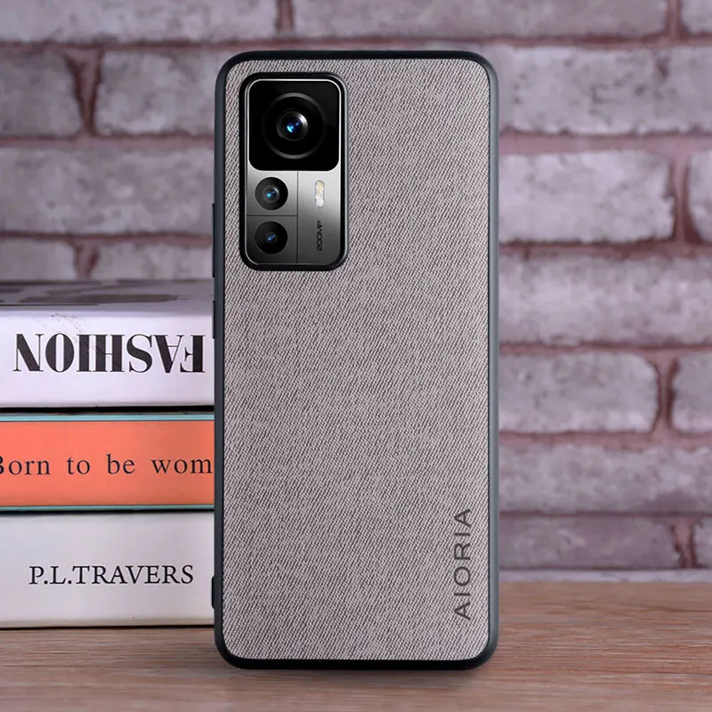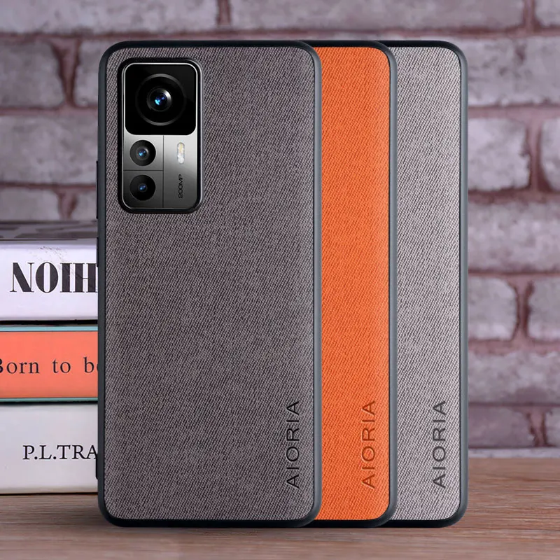Funda de cuero textil de lujo para Xiaomi 12T mi 12T Pro TPU suave con PC duro 3 en 1 funda protectora de material