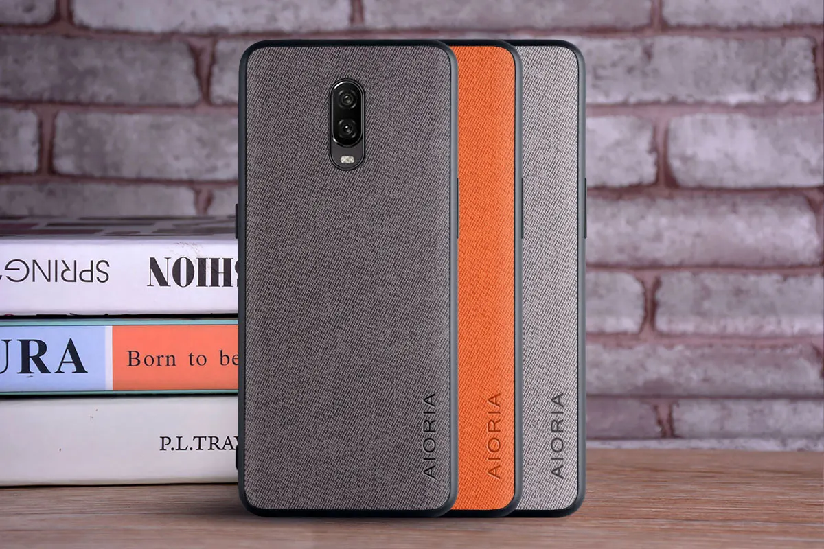 Textile Leather Case for Oneplus 6T soft TPU with back hard PC material camera protection design cover