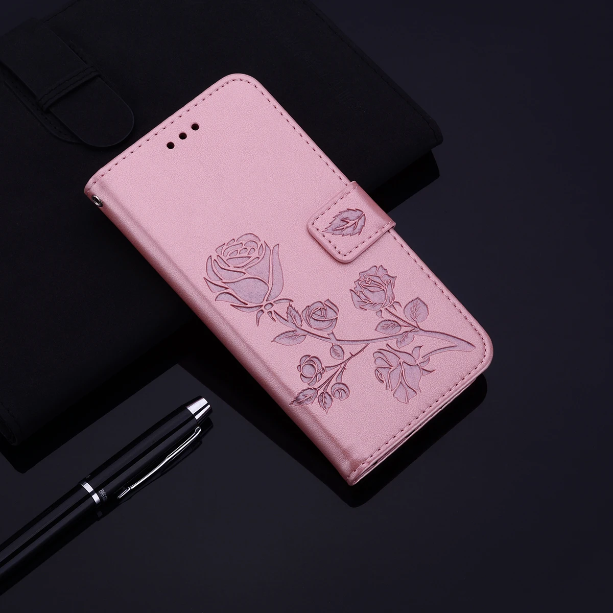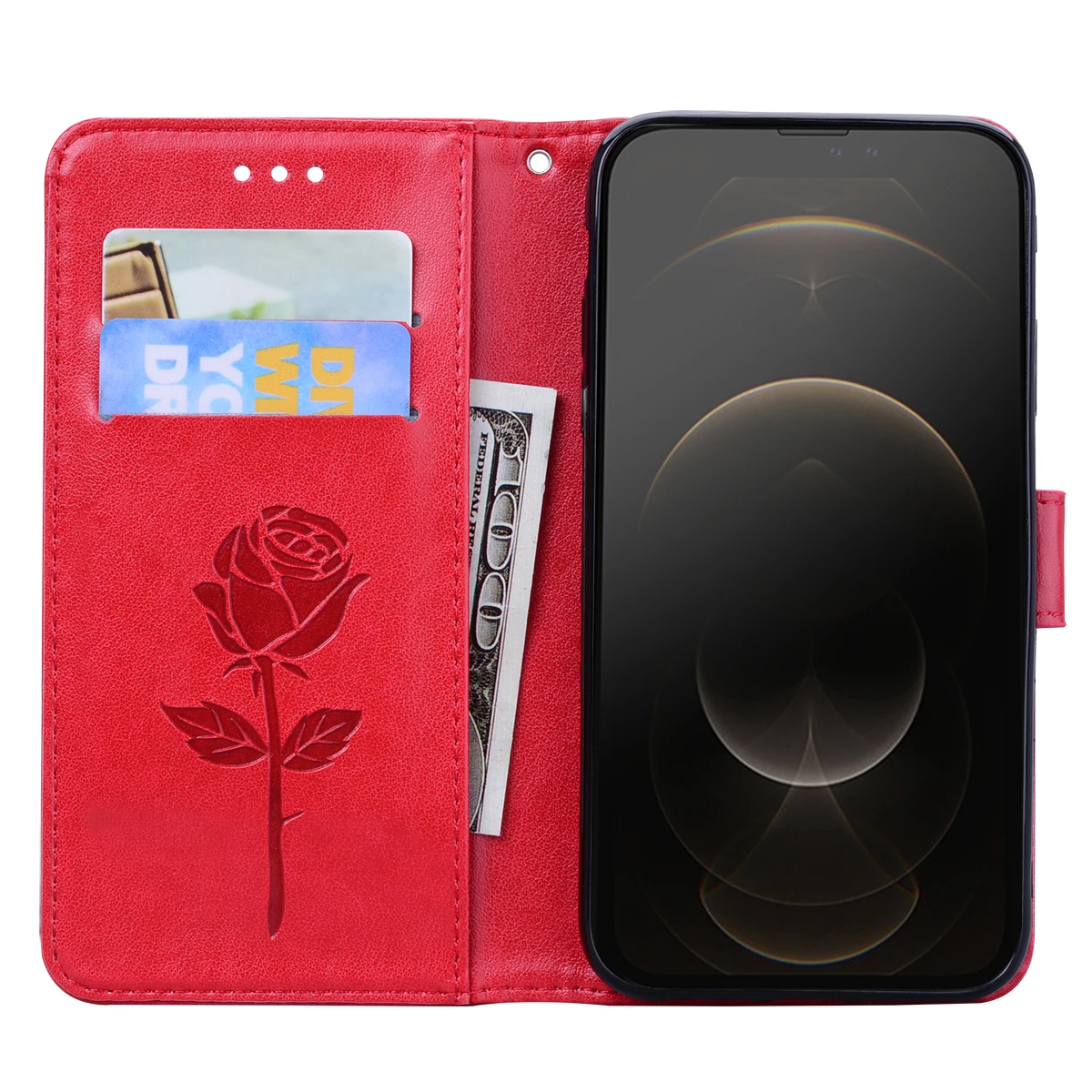 Funda de cuero tipo billetera con patrón de flores rosas para IPhone 14 Pro Max 13 12 Mini X XS XR 7 Plus 8 SE 2022, funda con soporte y ranura para tarjetas