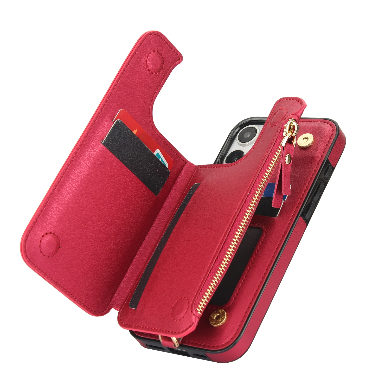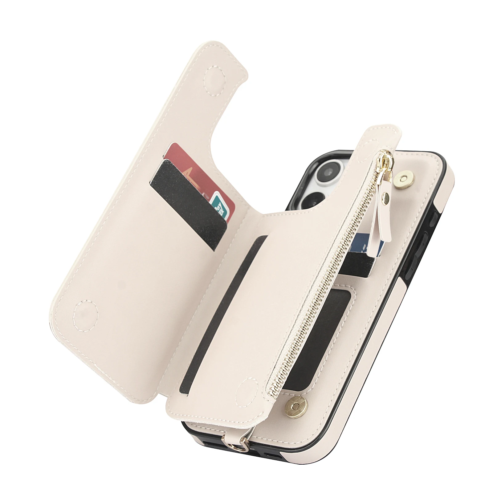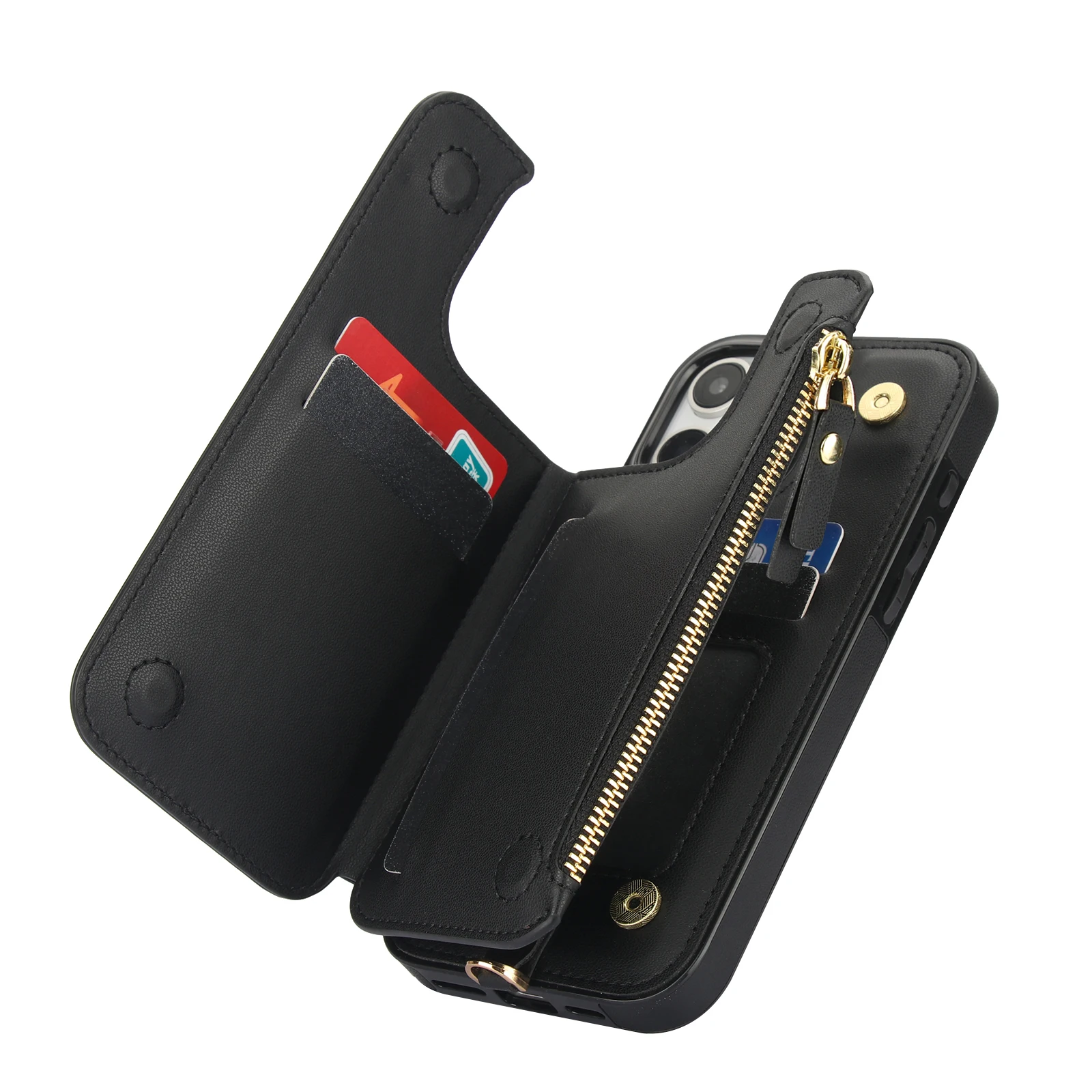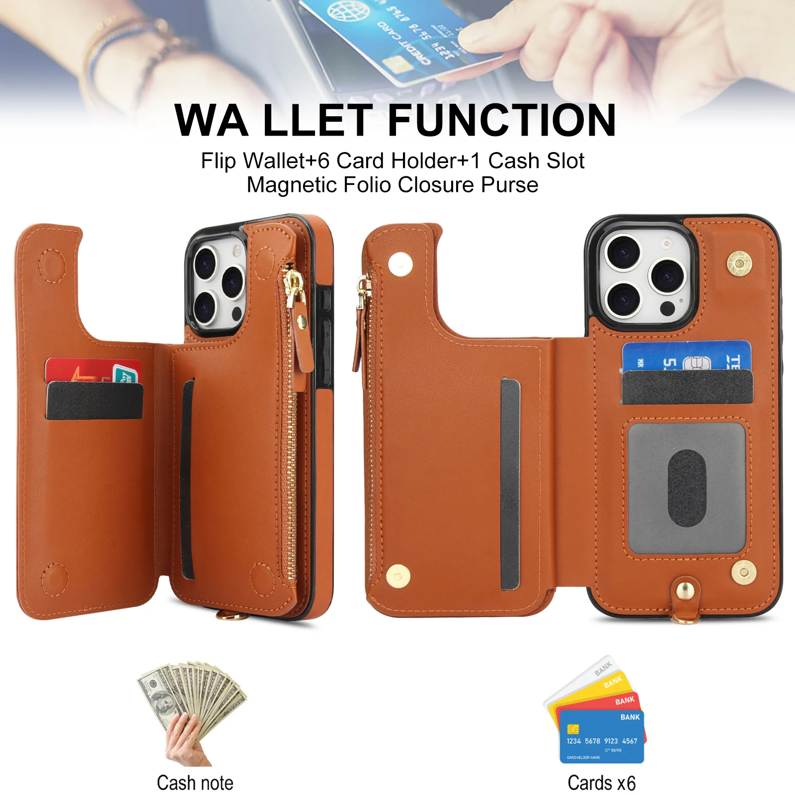 Funda de cuero tipo billetera Solt con múltiples tarjetas y cremallera para iPhone 16 Pro Max 15 Plus 14 13 12 11 XS XR, funda para bolso de bolsillo con correa de mano