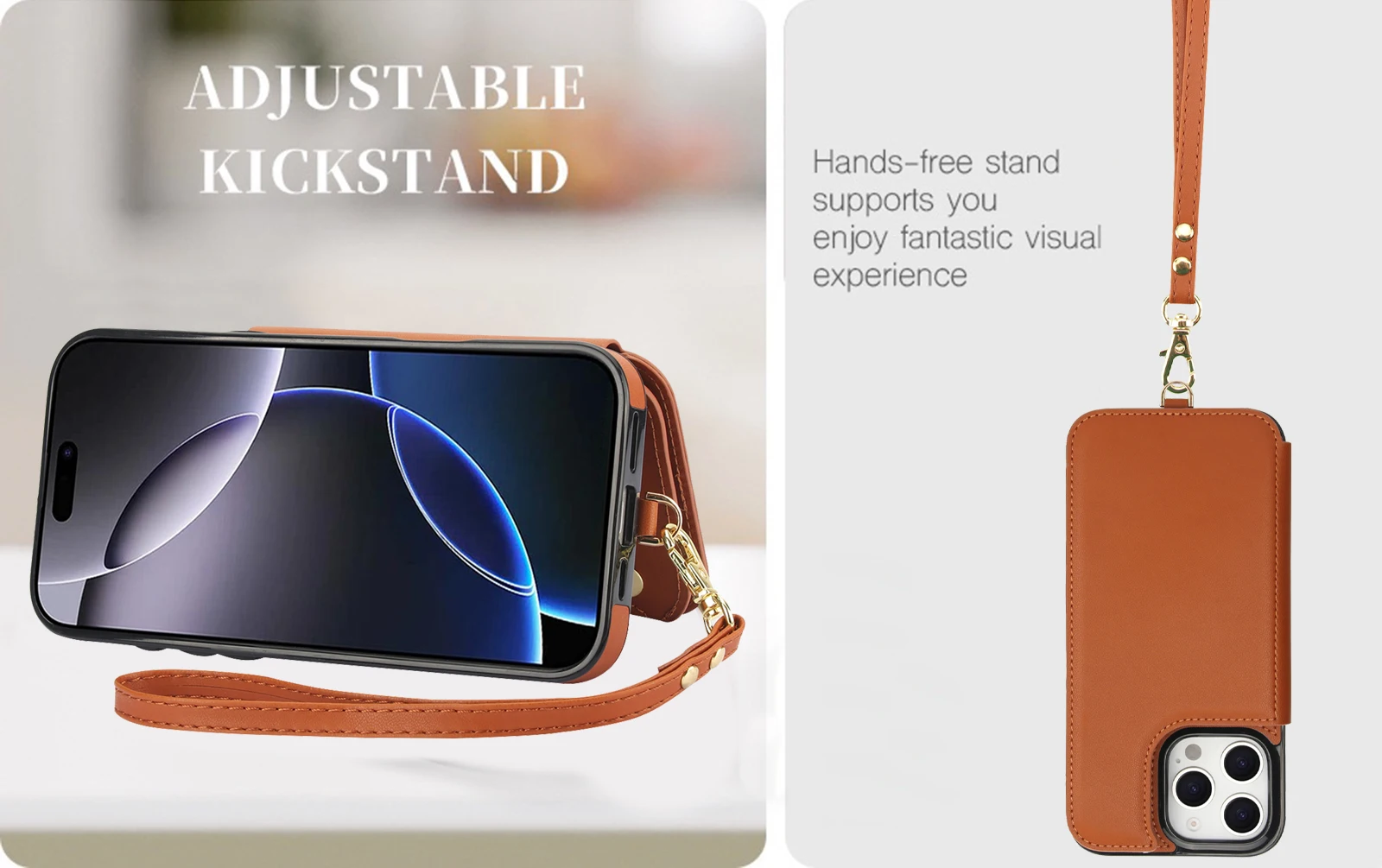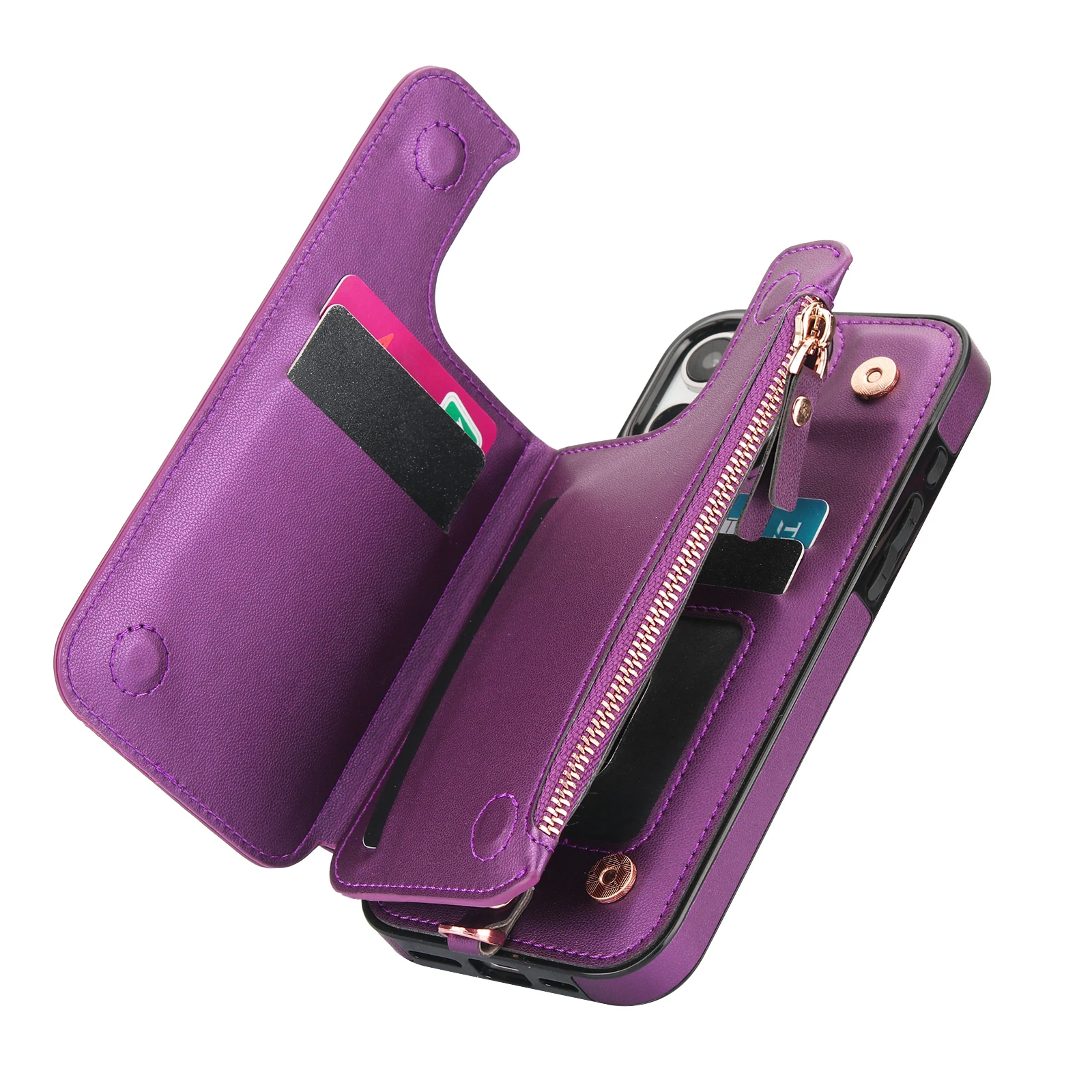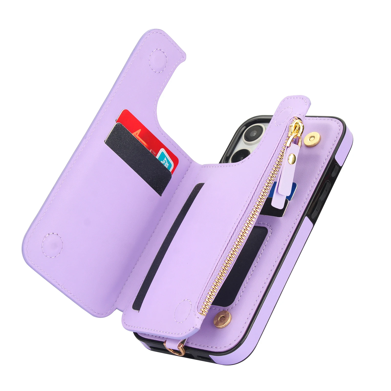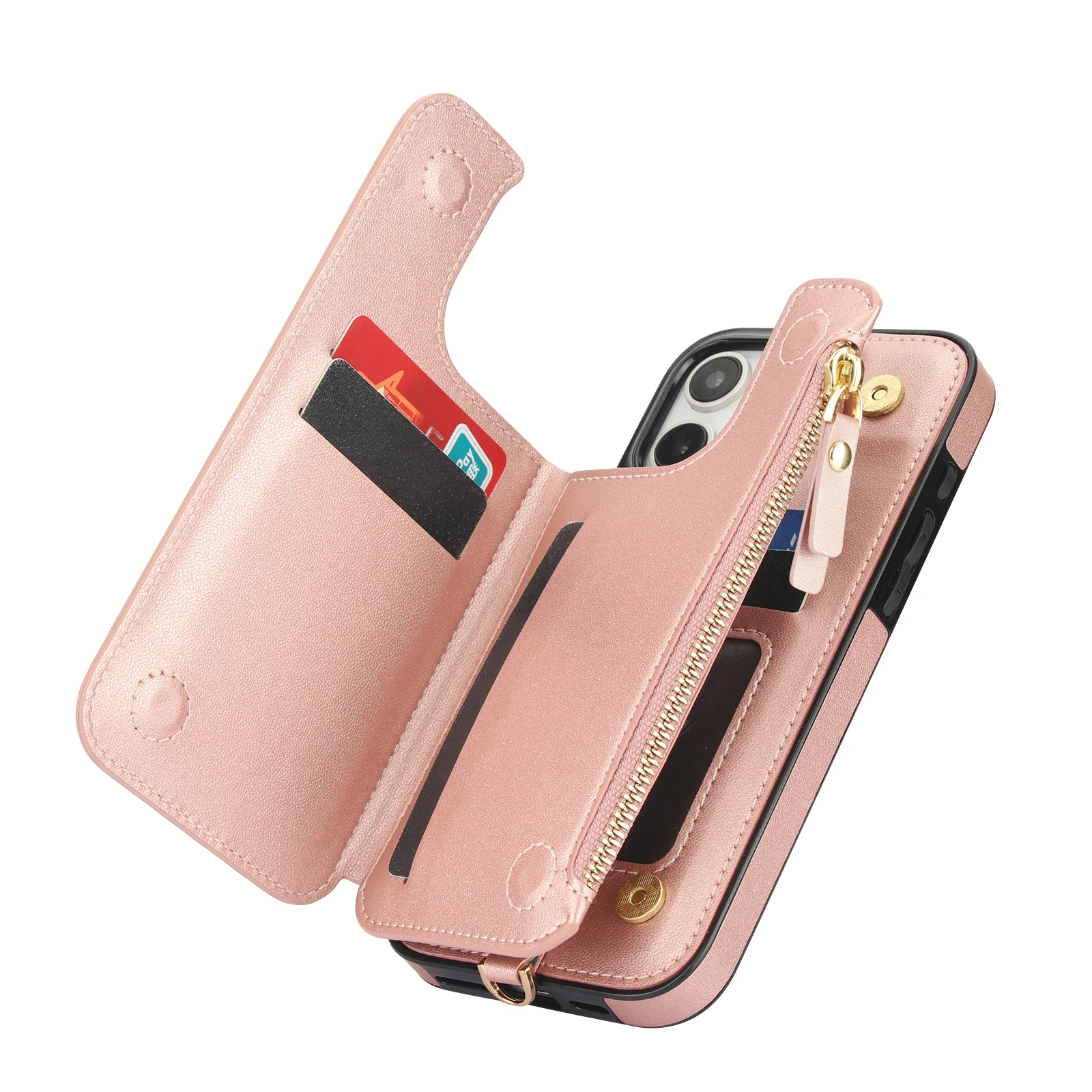 Funda de cuero tipo billetera Solt con múltiples tarjetas y cremallera para iPhone 16 Pro Max 15 Plus 14 13 12 11 XS XR, funda para bolso de bolsillo con correa de mano