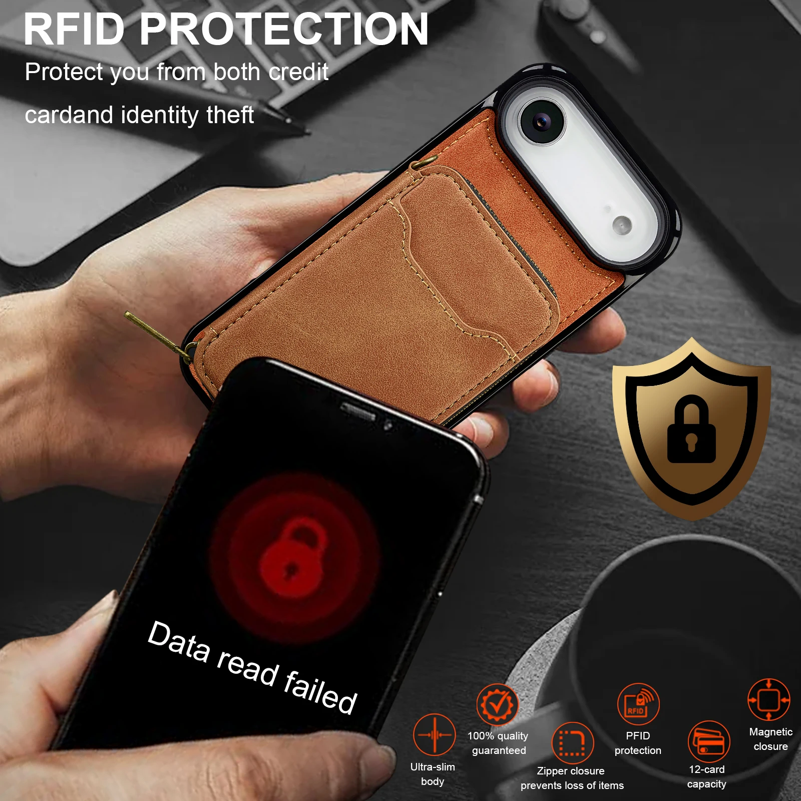Funda de cuero tipo billetera Solt con tarjeta y cremallera magnética desmontable 2 en 1 para iPhone 17 Pro Max 16 Plus 15 14 13 12 para funda de bolsa Magsafe