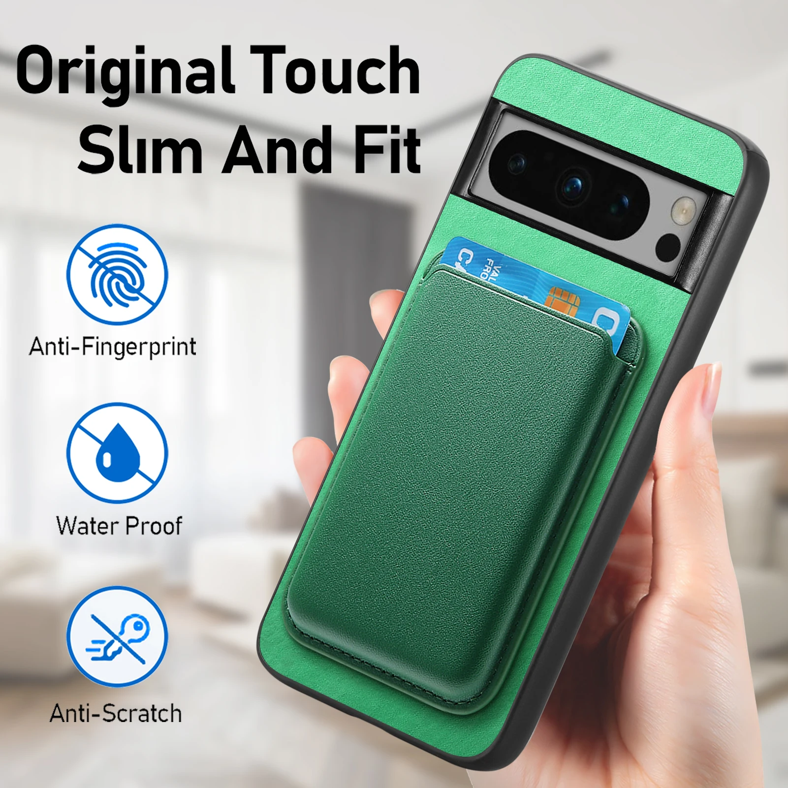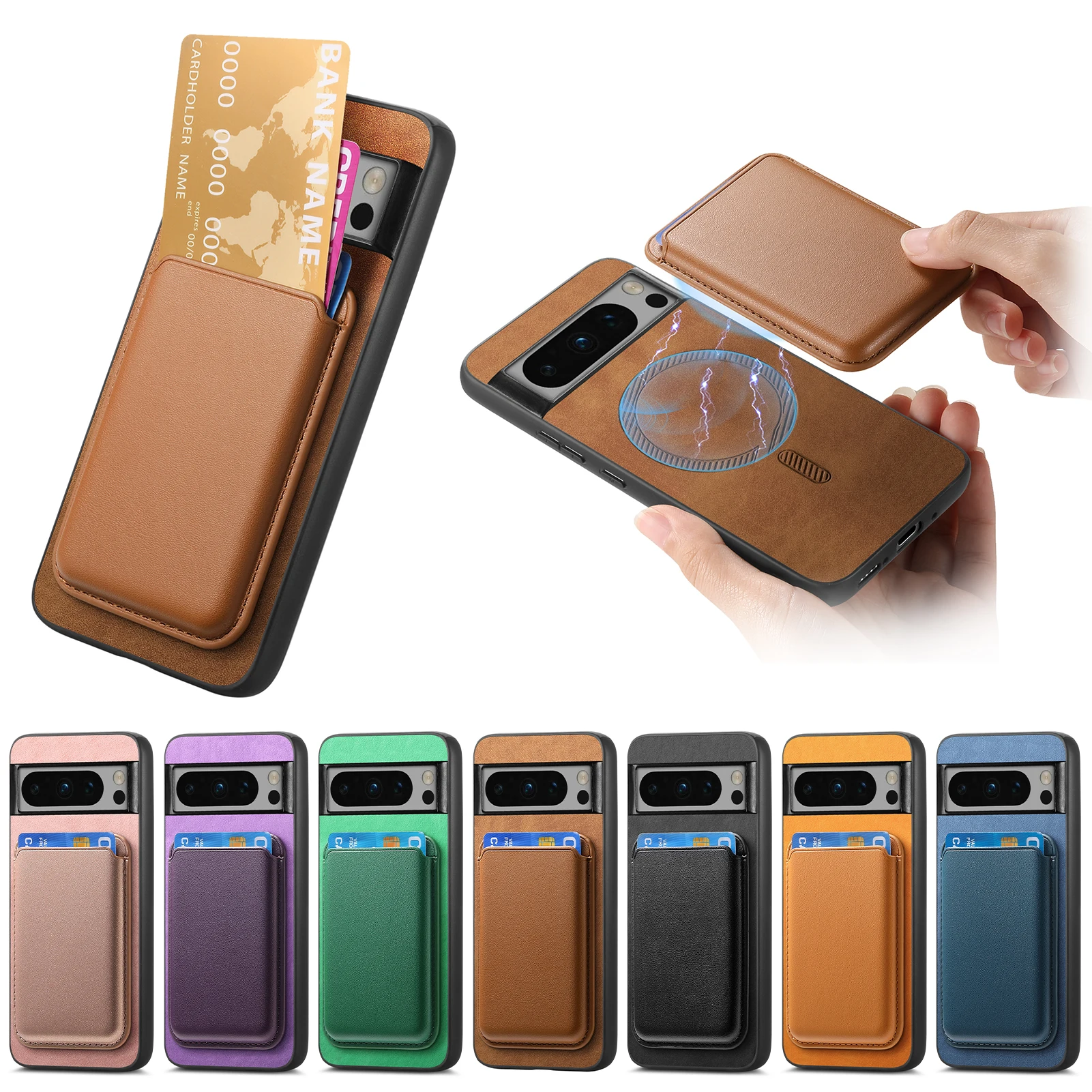 Funda de cuero tipo billetera 2 en 1 con tarjetas desmontables para Google Pixel 9 Pro 8 8A 7A, funda magnética de carga inalámbrica para bolso