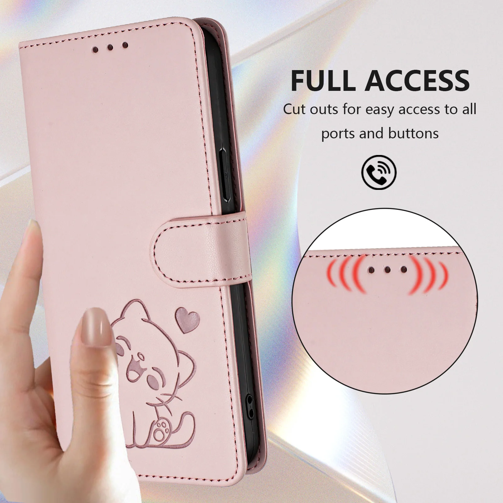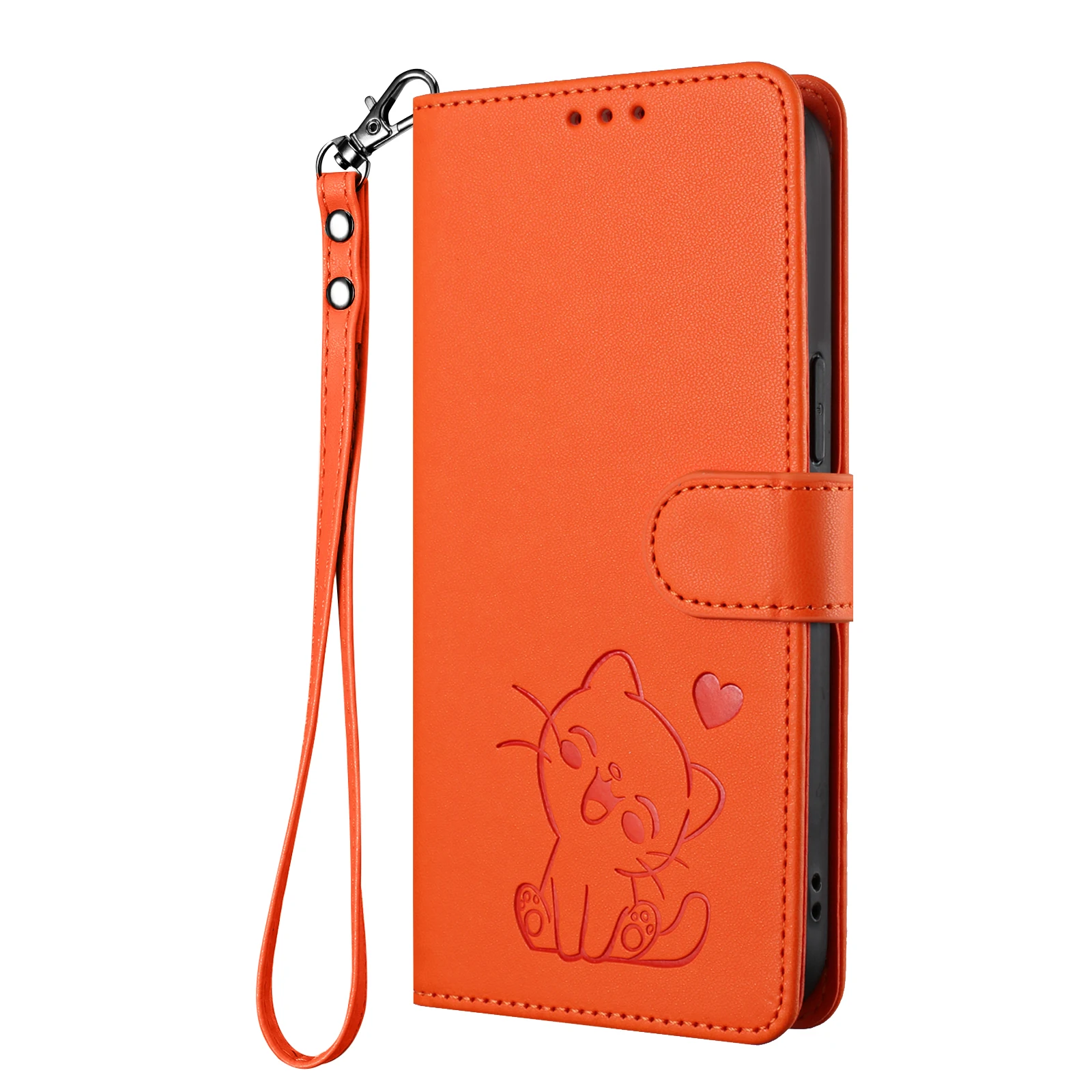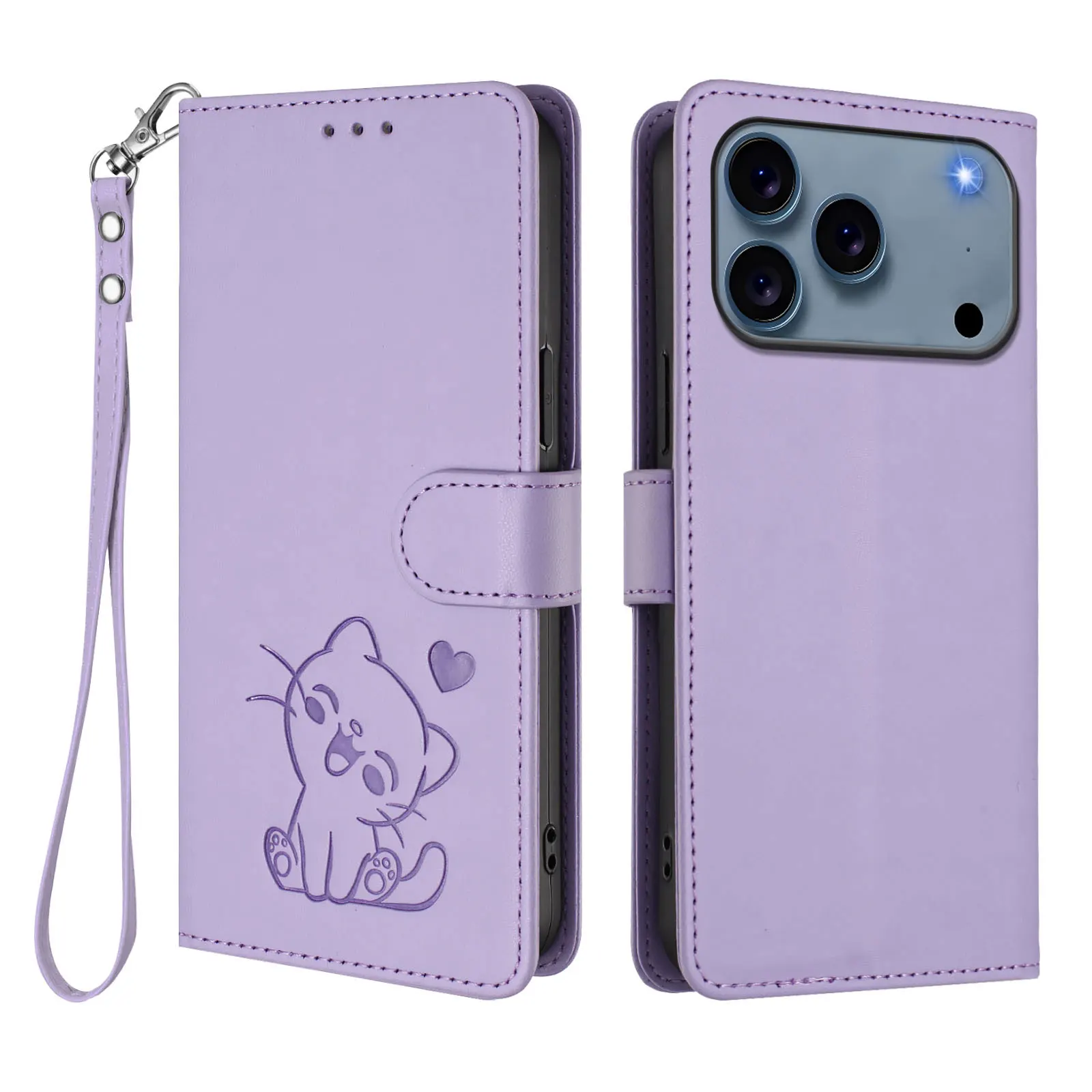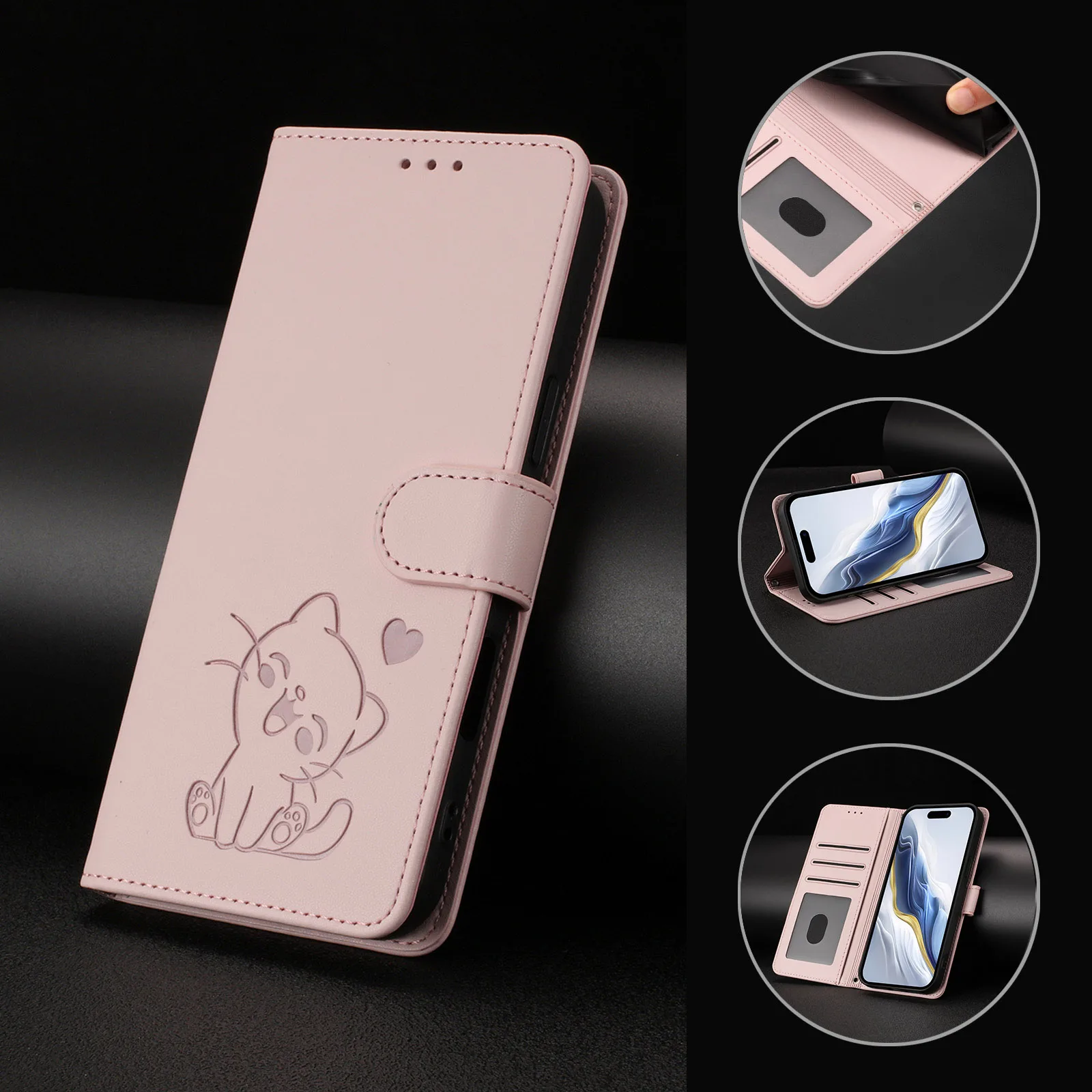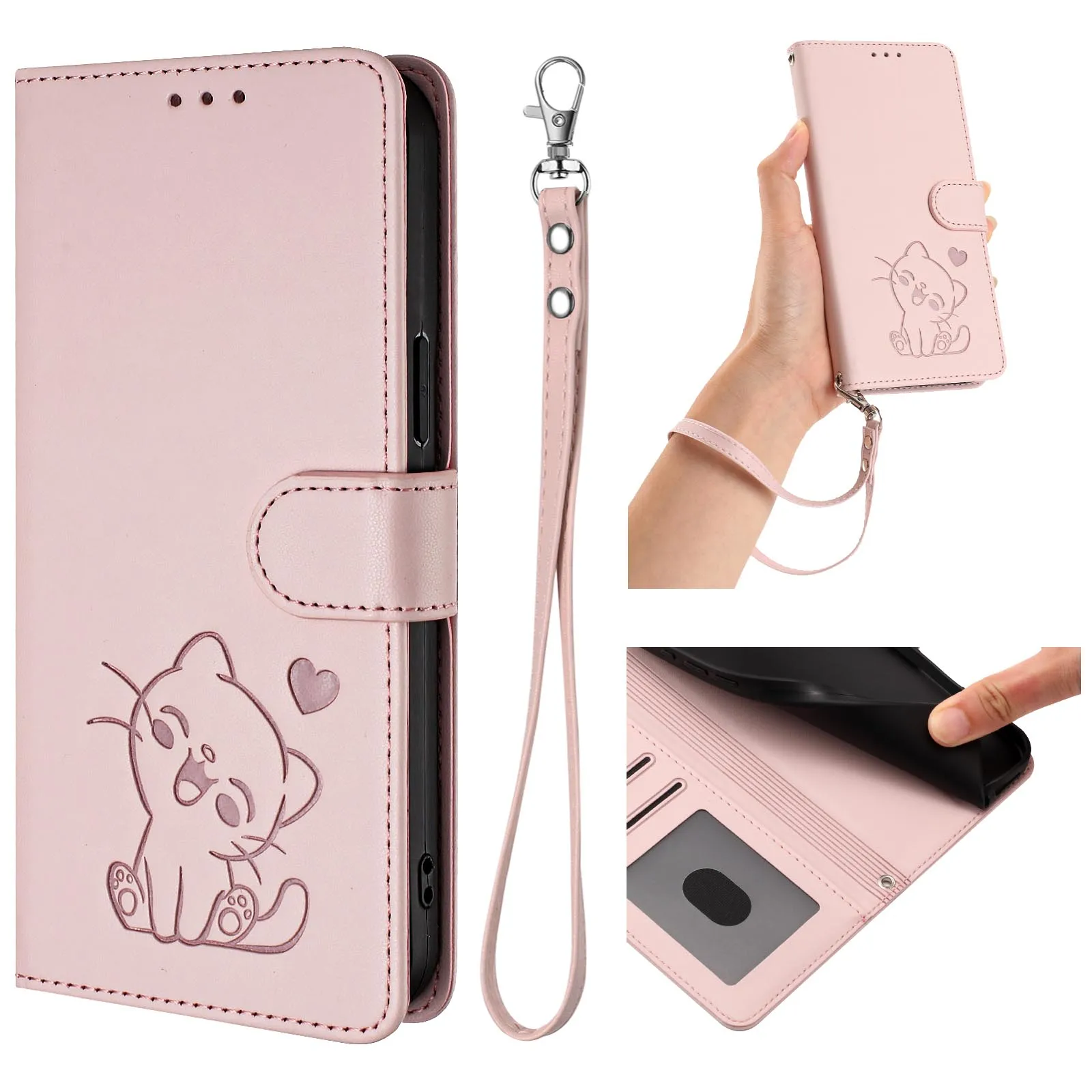 Funda de cuero tipo billetera Solt con tarjetas de gato lindas en relieve para iPhone 17 Pro Max 16 Plus 16E 15 14 13 12 11, funda con correa para bolso