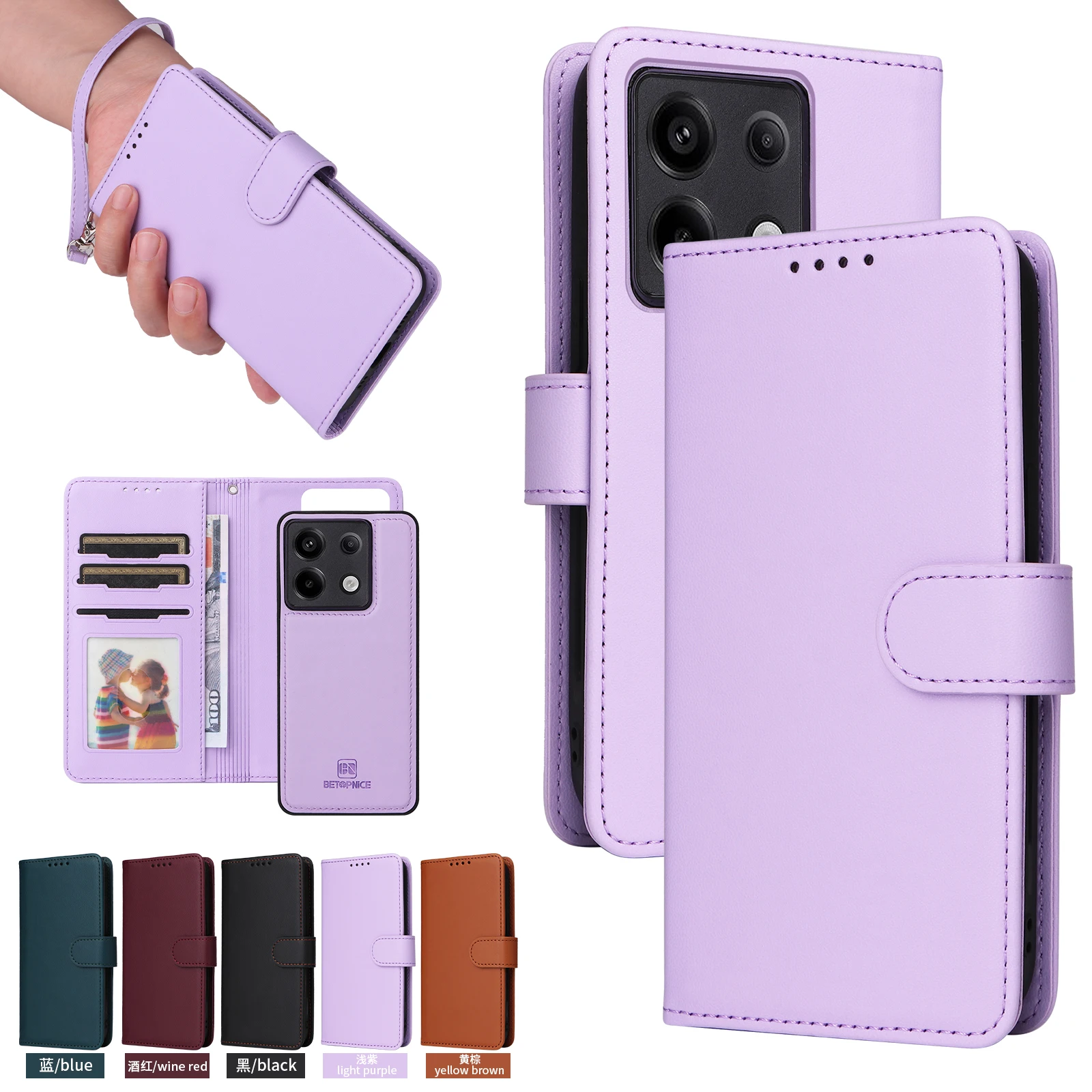 Funda de cuero tipo billetera Solt con tarjetas magnéticas 2 en 1 para Xiaomi Redmi Note 13 Pro Plus 12 13C 13T C65 POCO X6 5G funda con correa para bolsa