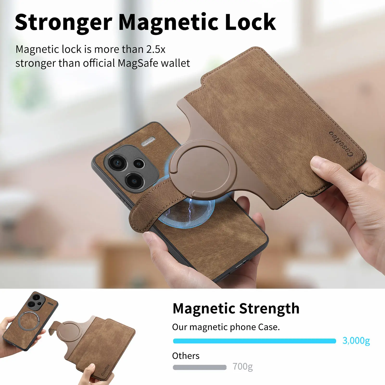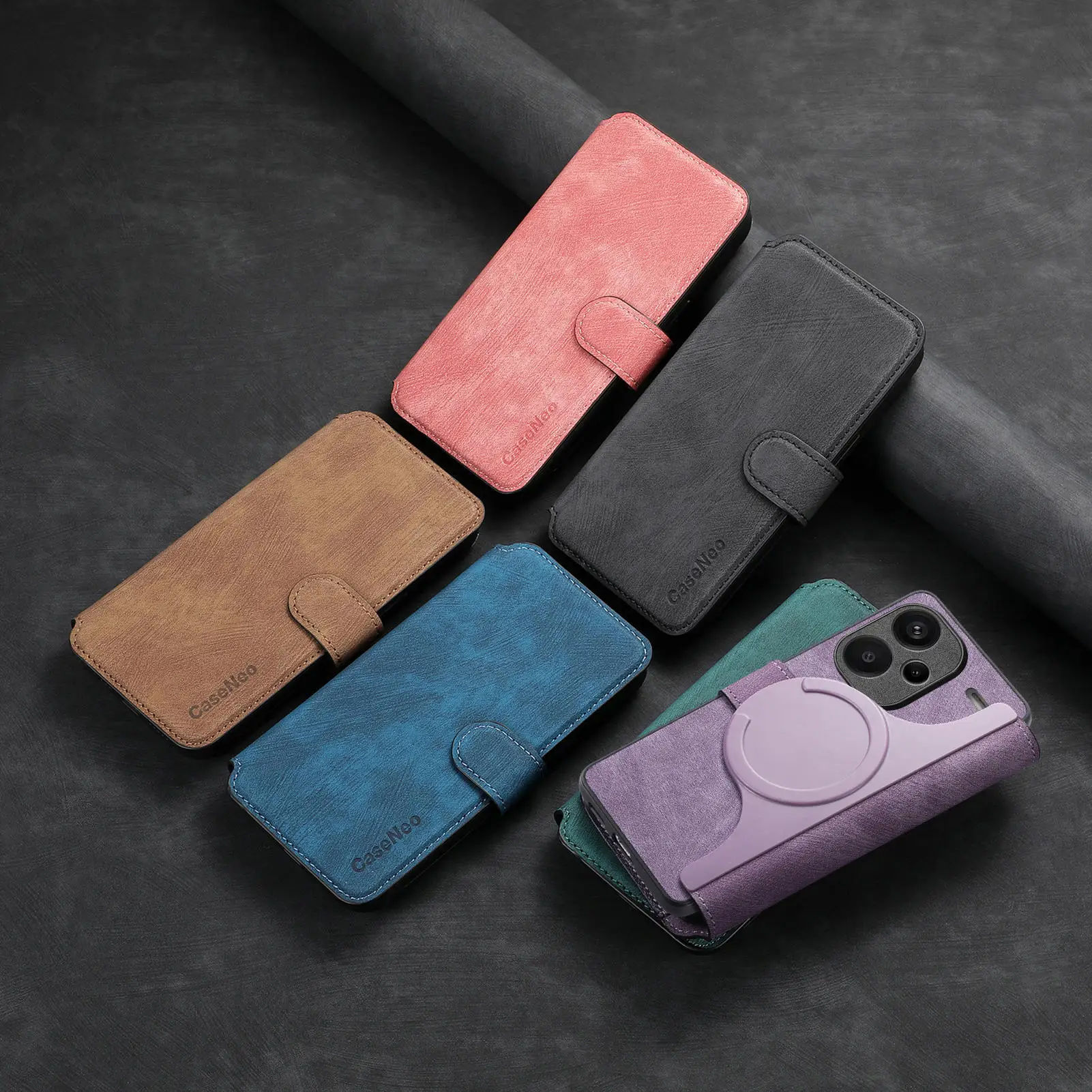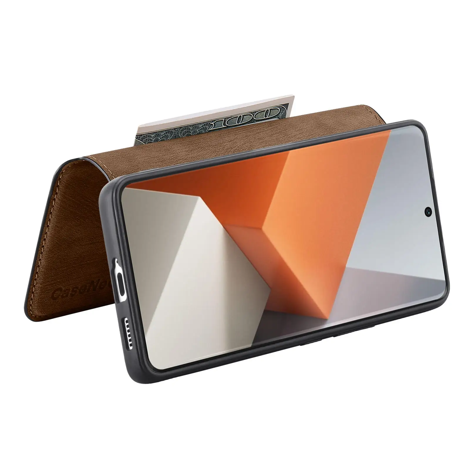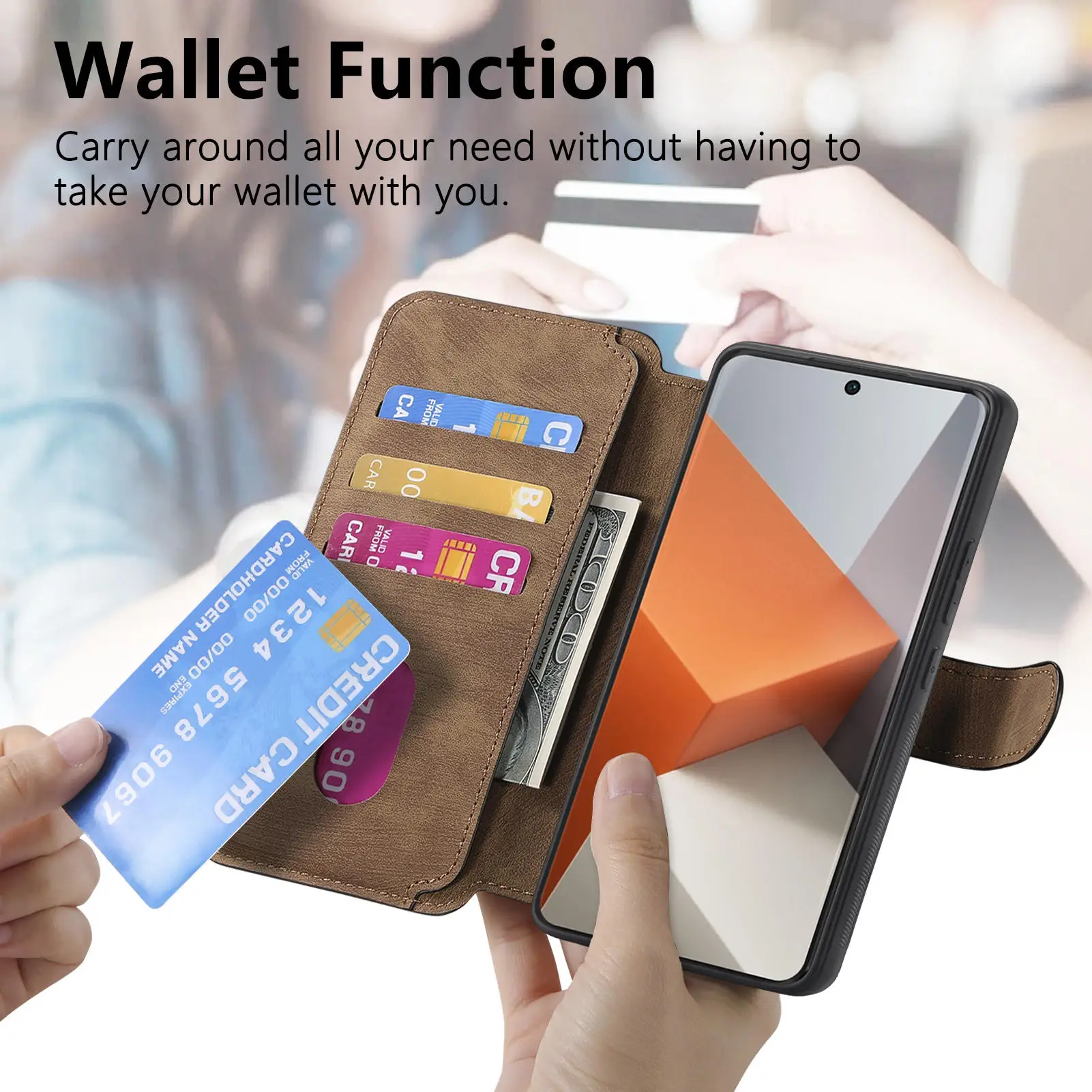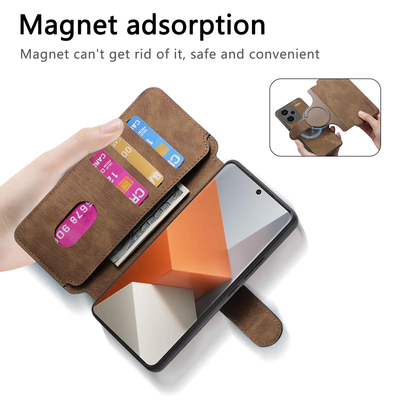 Funda de cuero tipo billetera Solt con tarjetas magnéticas desmontables 2 en 1 para Redmi Note 13 Pro Plus 12 13C 13T 11, funda de carga inalámbrica con tapa