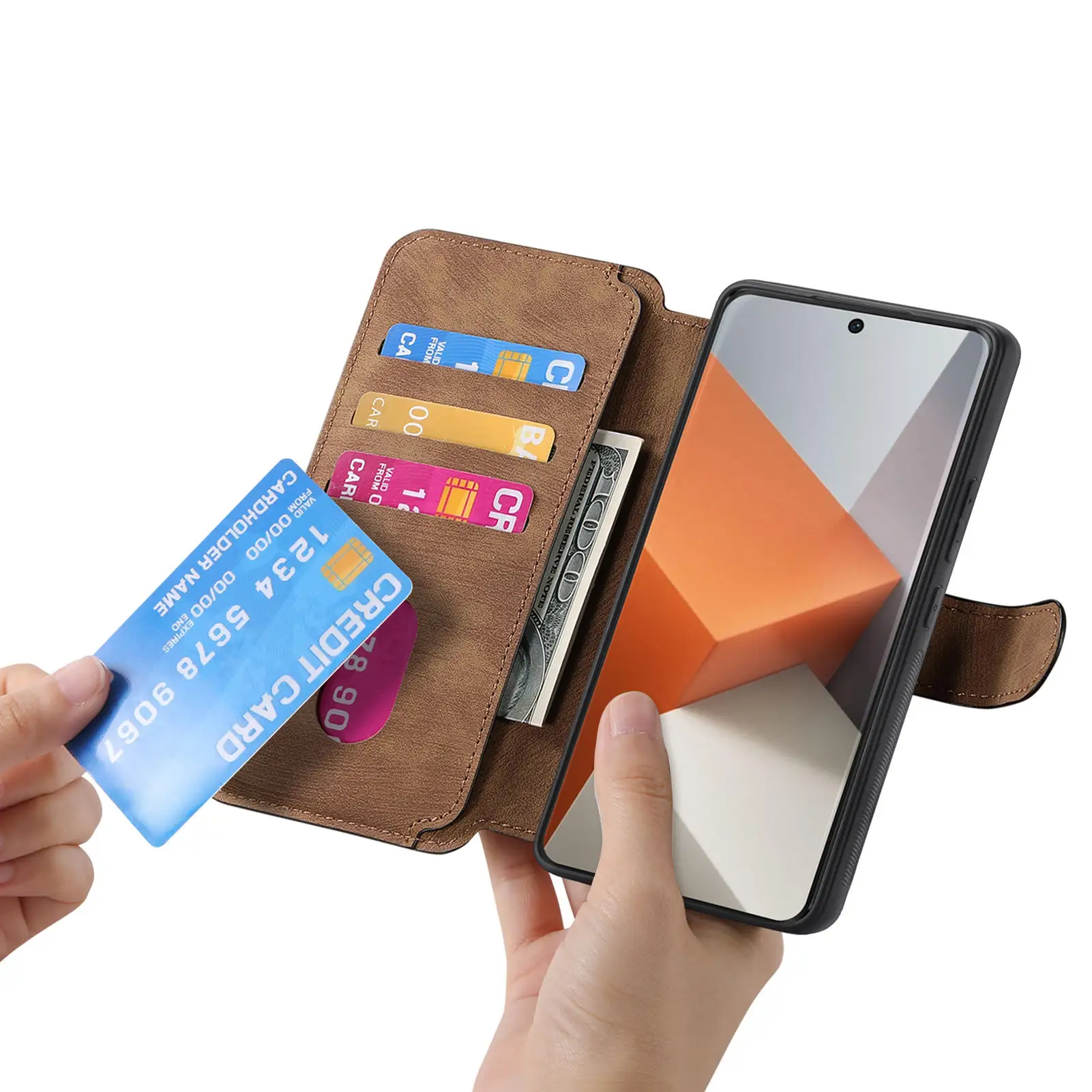 Funda de cuero tipo billetera Solt con tarjetas magnéticas desmontables 2 en 1 para Redmi Note 13 Pro Plus 12 13C 13T 11 funda de carga inalámbrica con tapa