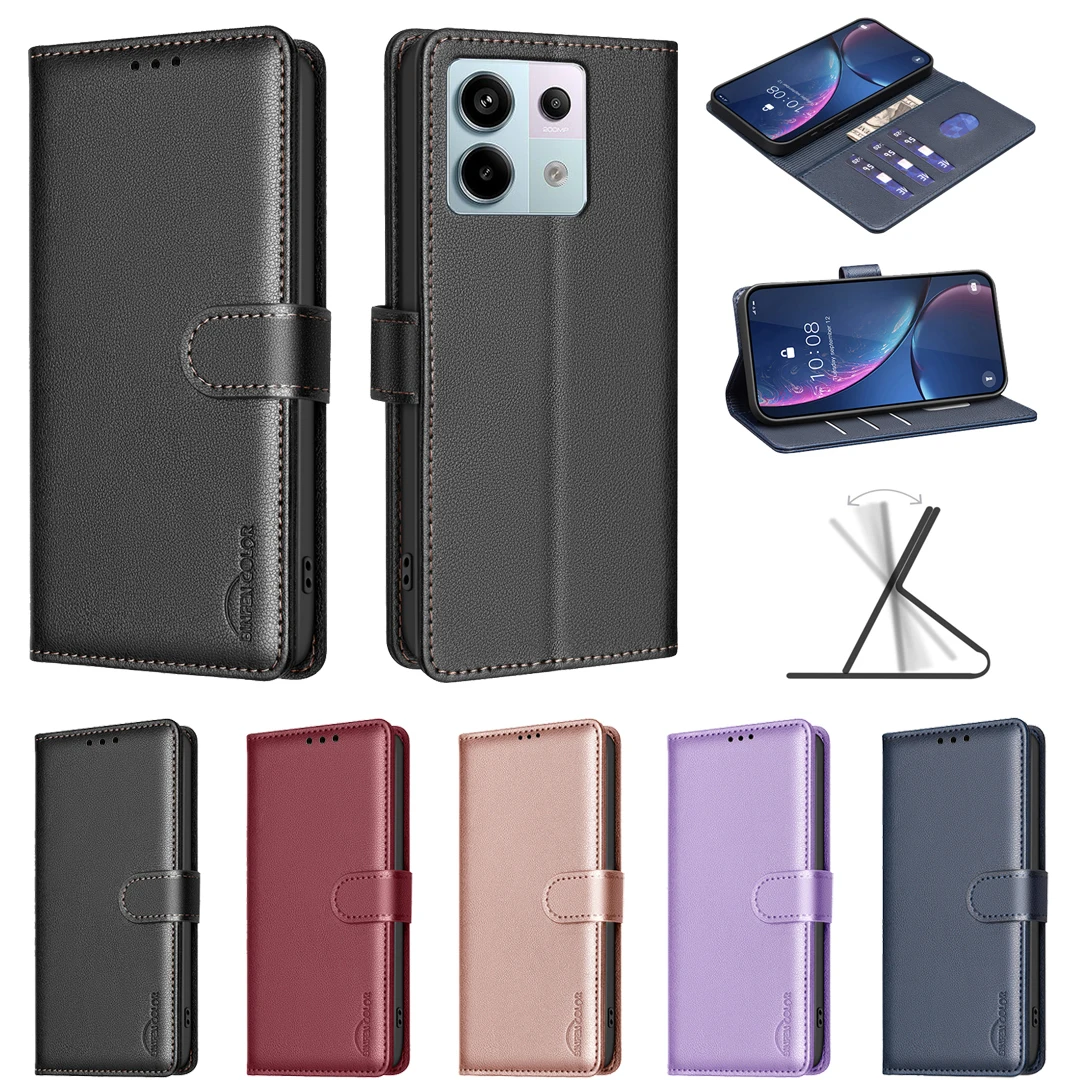 Funda tipo libro tipo billetera de cuero Solt con tarjetas con tapa para Xiaomi Redmi Note 13 Pro Plus 12 11 Poco X6 X5 13T 13C Litchi, funda de negocios
