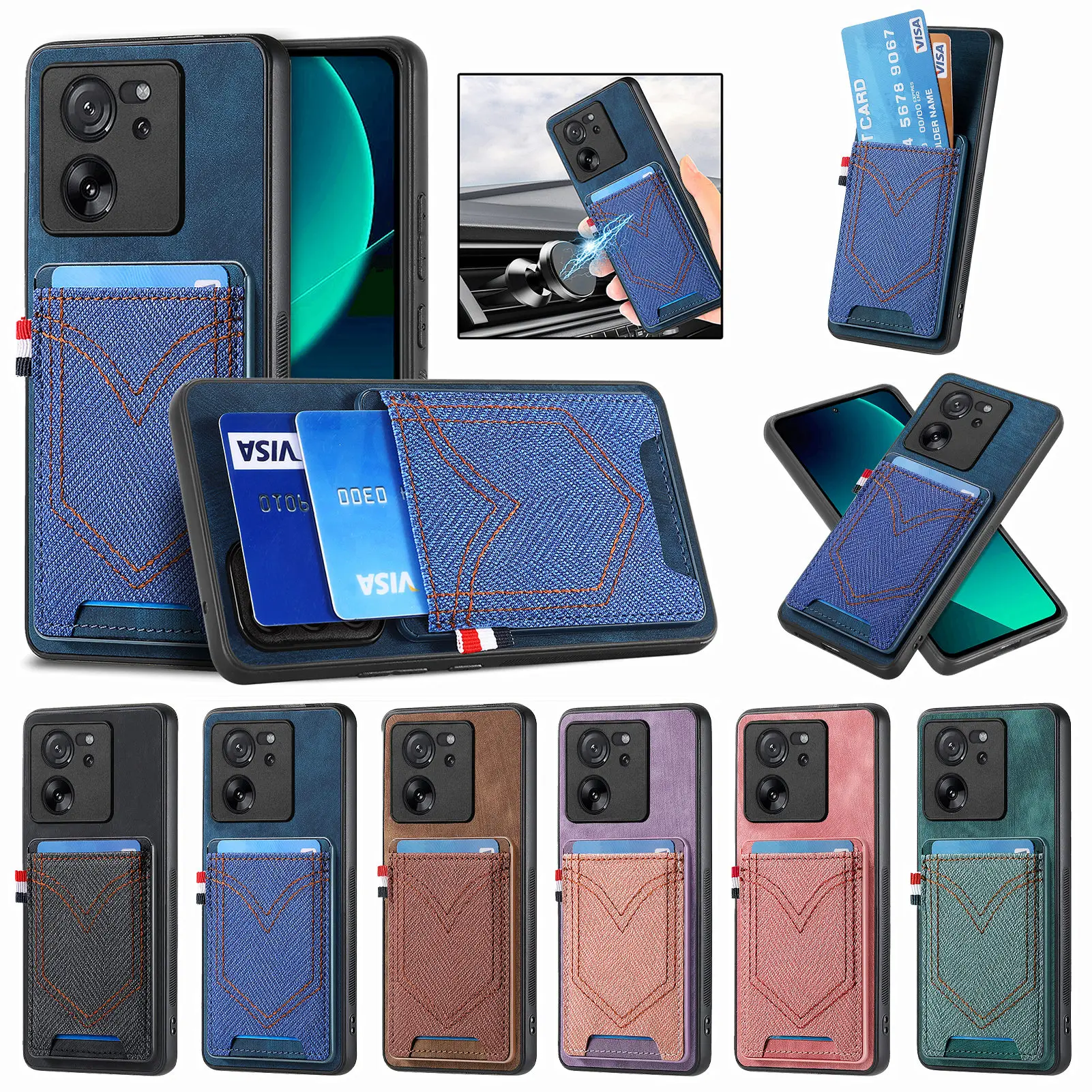 Funda de cuero con billetera de Solt de tarjetas verticales para Xiaomi Redmi Note 13 Pro Plus 12 12T 11Lite POCO X5 X4 12C X3, funda magnética Vintage