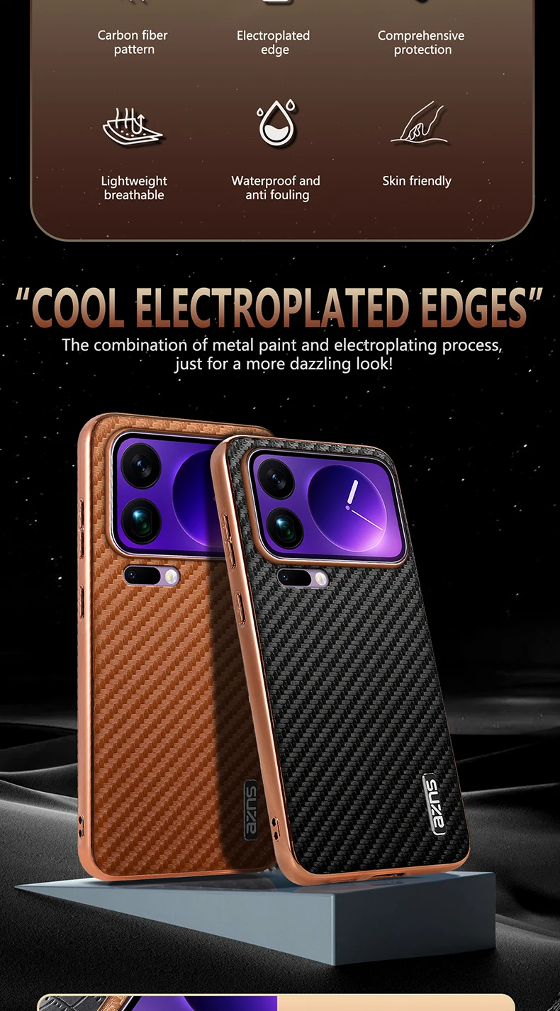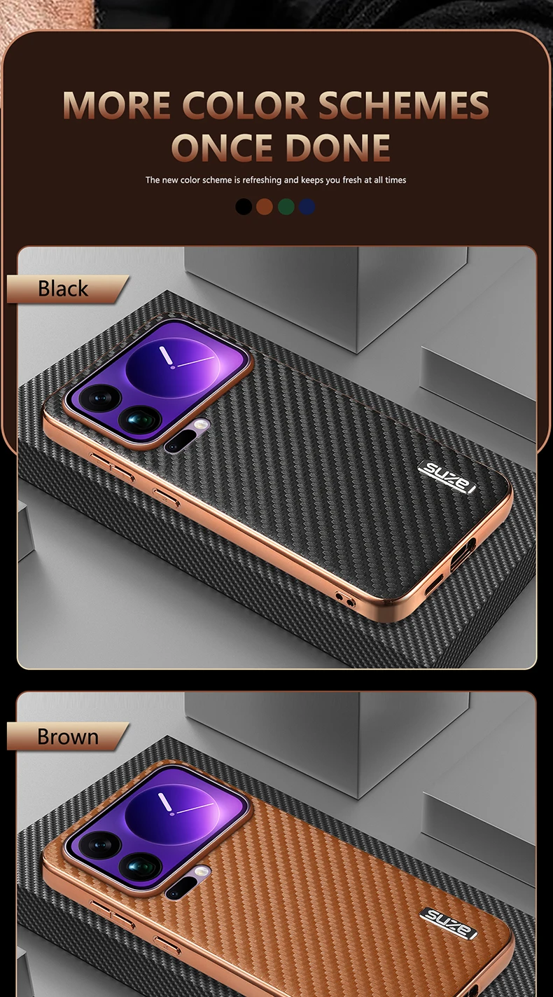 Funda de cuero para Xiaomi Mi 17 15 14 Pro Max Ultra, textura de fibra de carbono, parachoques chapado suave, carcasa a prueba de golpes, Fundas para teléfono