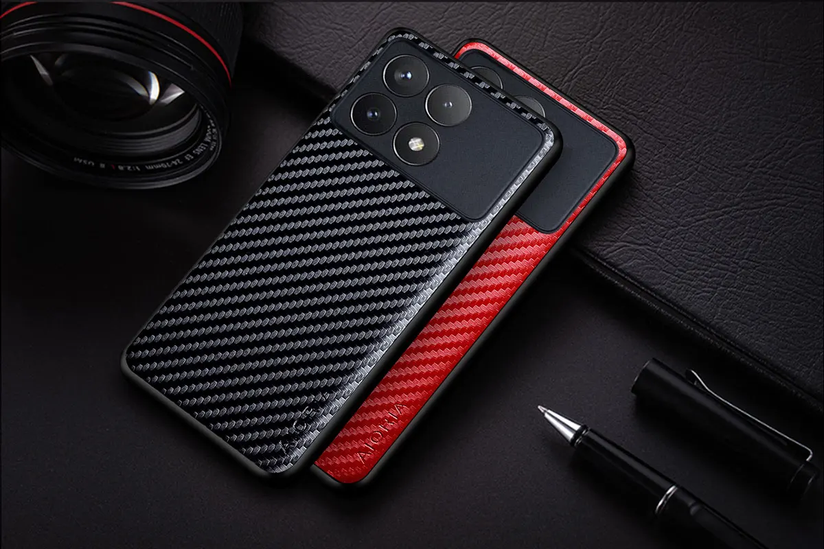 Funda delgada a prueba de golpes de fibra de carbono para Xiaomi Redmi K70 K70E K60 K60E K50 K40 K30 Pro funda protectora de cuerpo completo ultra antideslizante