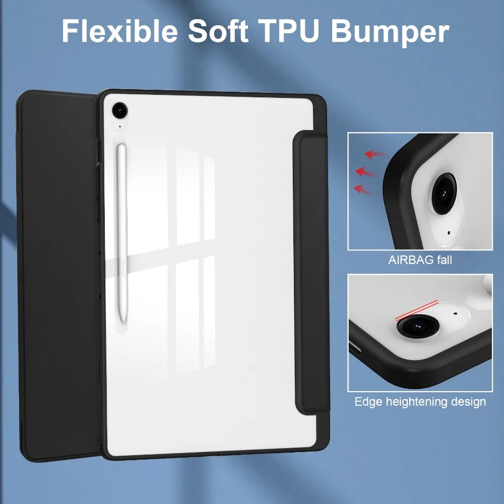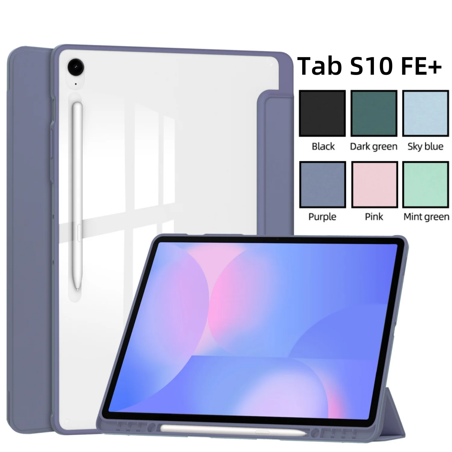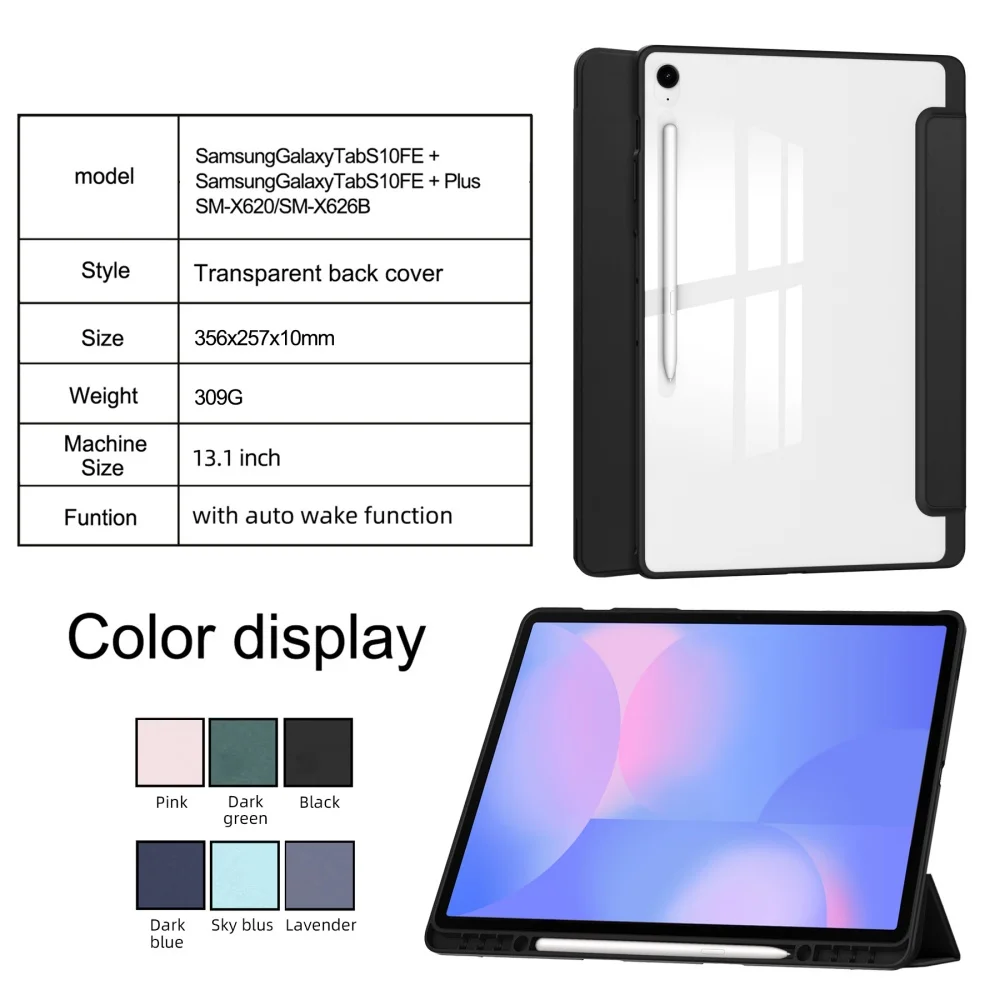 Comprar Funda delgada para Samsung Galaxy Tab S10 FE + / S10 FE Plus, funda de 13,1 pulgadas con soporte para bolígrafo, funda para tableta con soporte triple, encendido/apagado automático