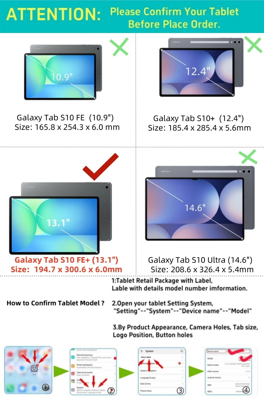 Atención: Nombre del dispositivo Galaxy Tab S10 FE+;