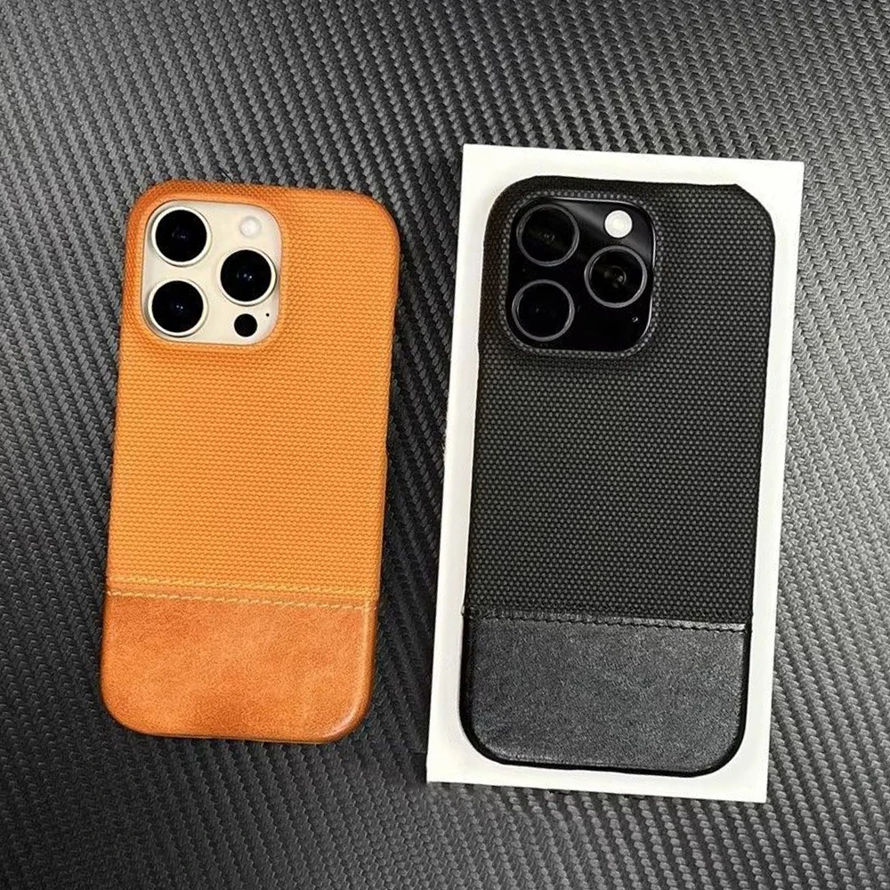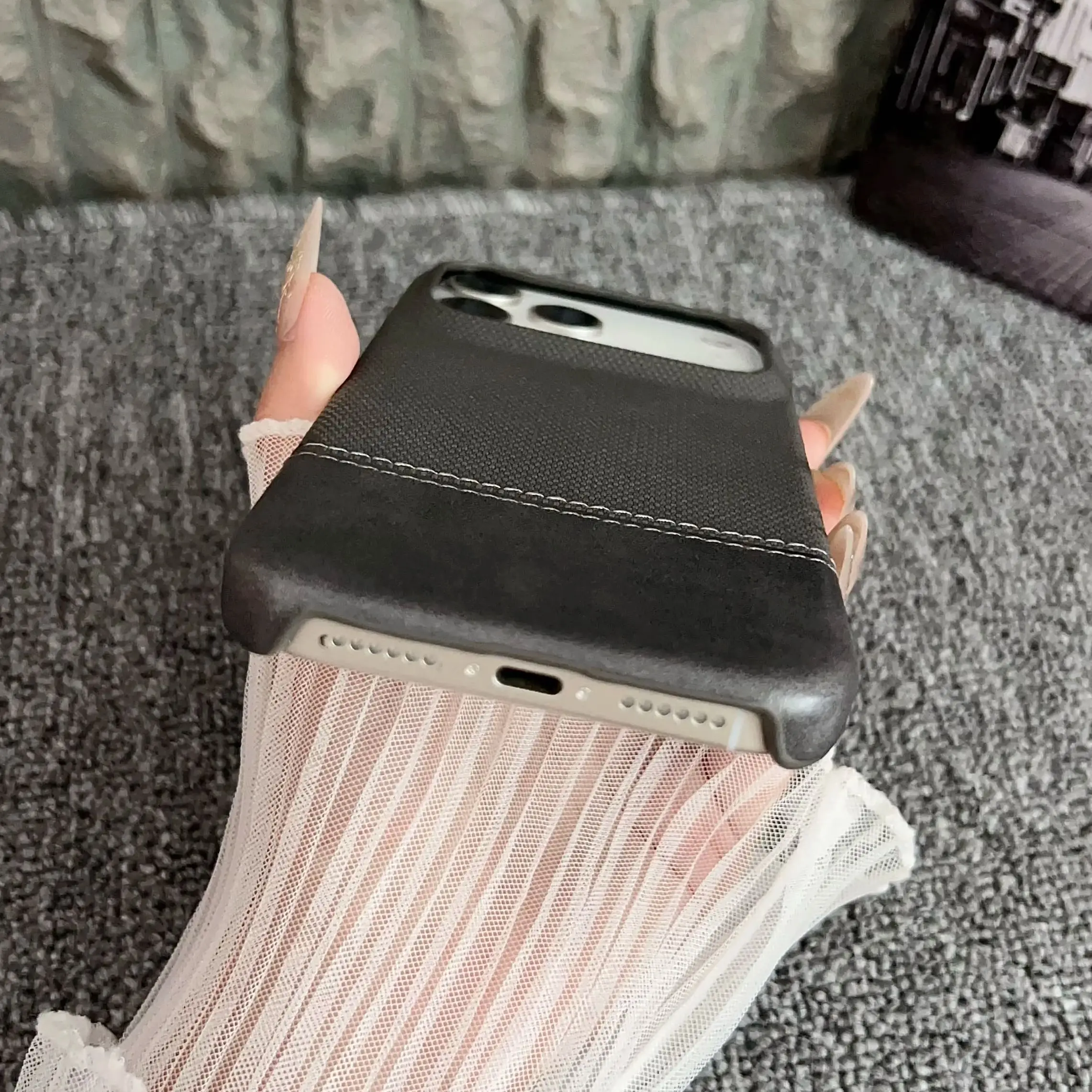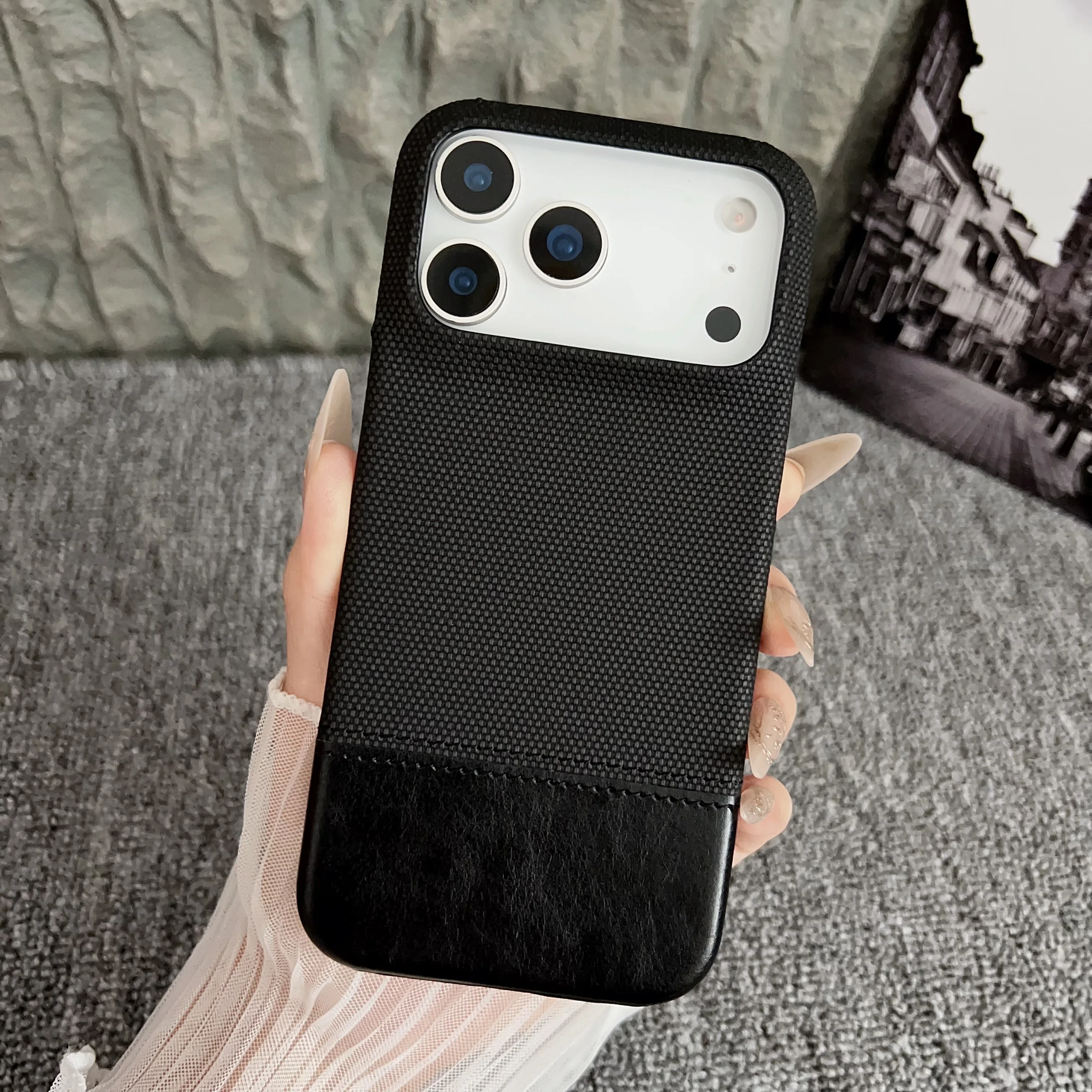 Funda delgada con textura de cuero para empalme de negocios para iPhone 17 Air 16 15 14 13 12 Pro Max Plus, cubierta sin marco de parachoques mate de tela