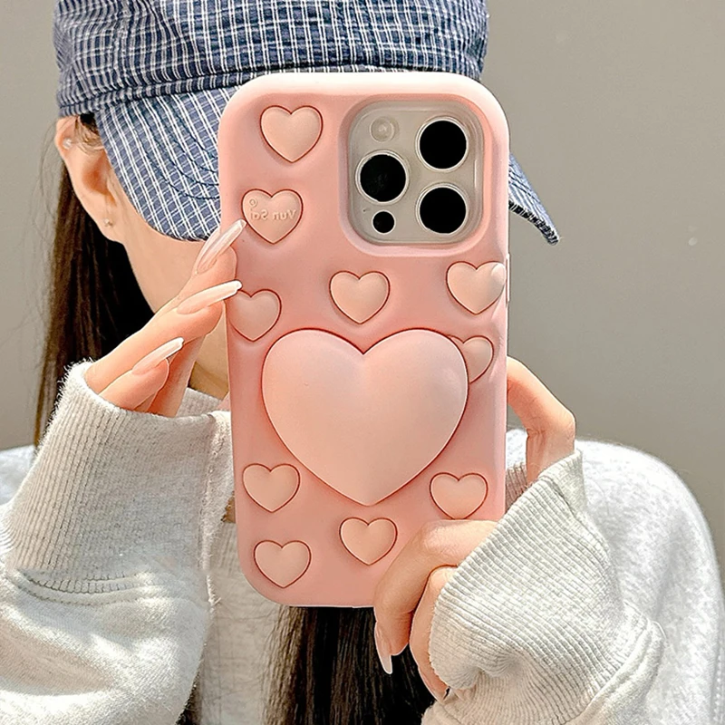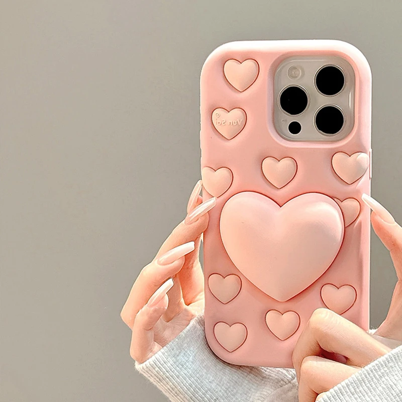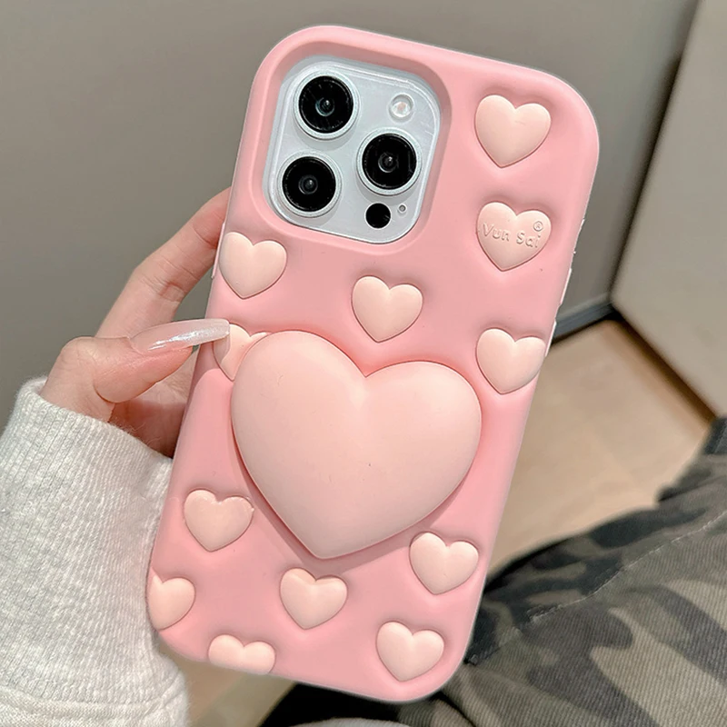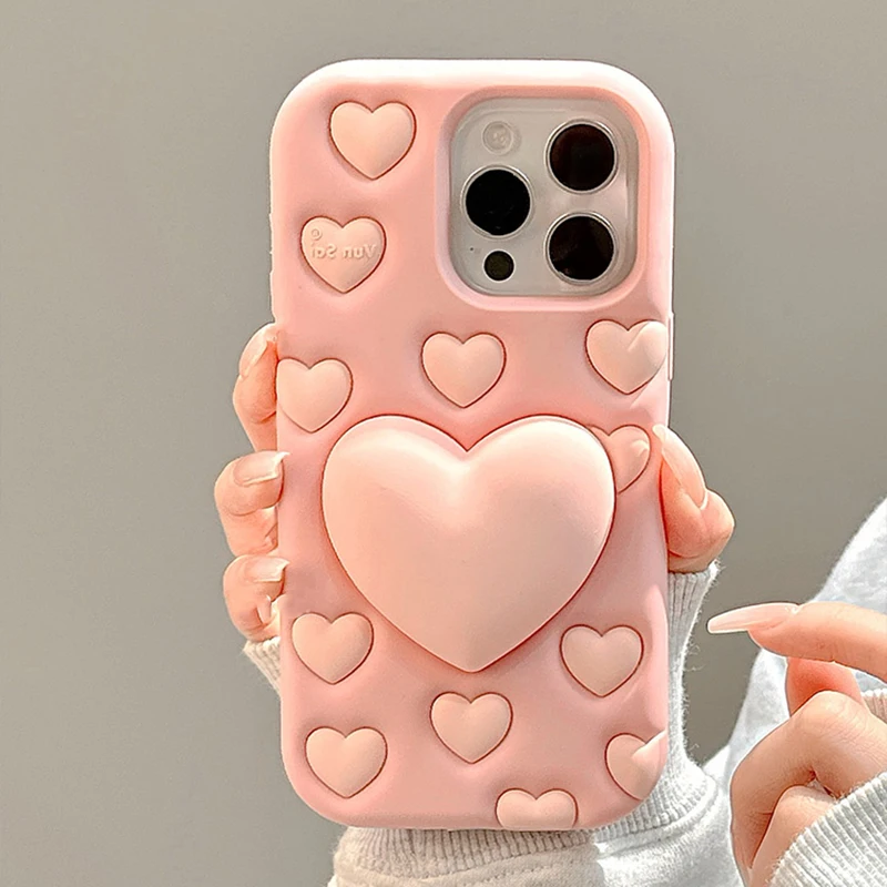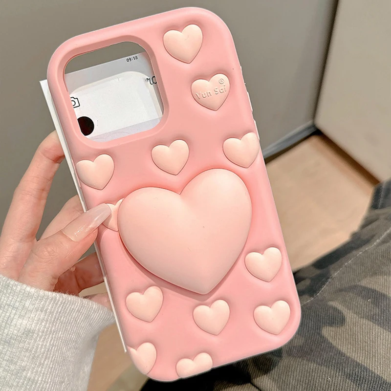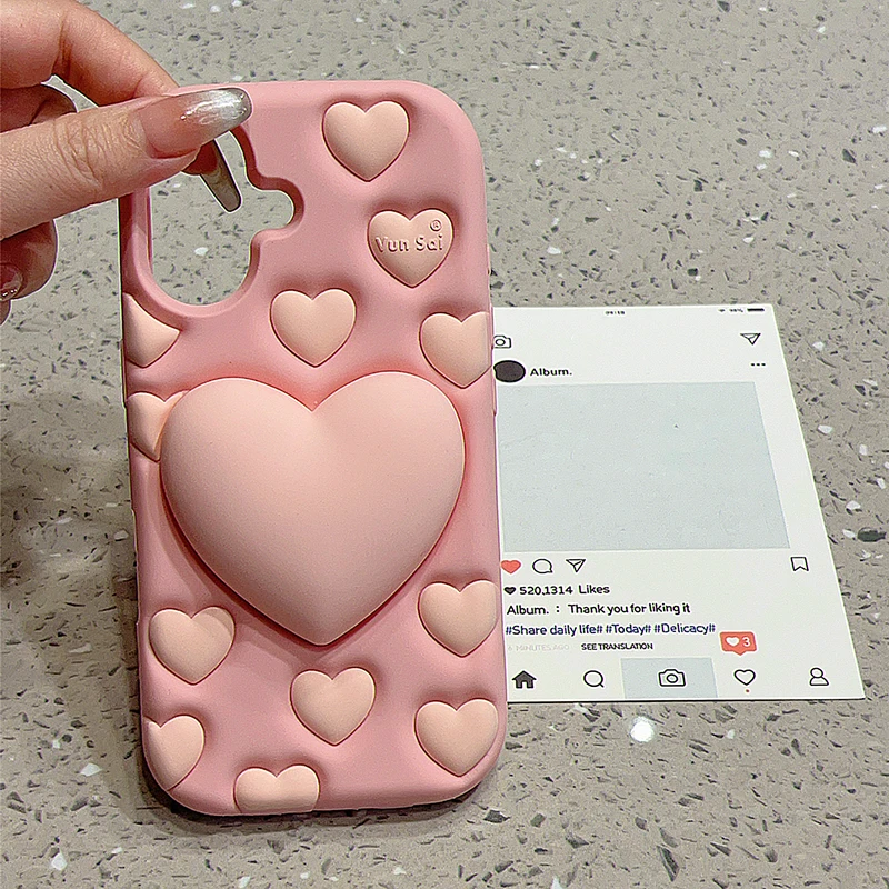Funda de descompresión con soporte de corazón de amor 3D rosa para iPhone 16 15 13 14 12 Pro Max funda de teléfono de silicona suave