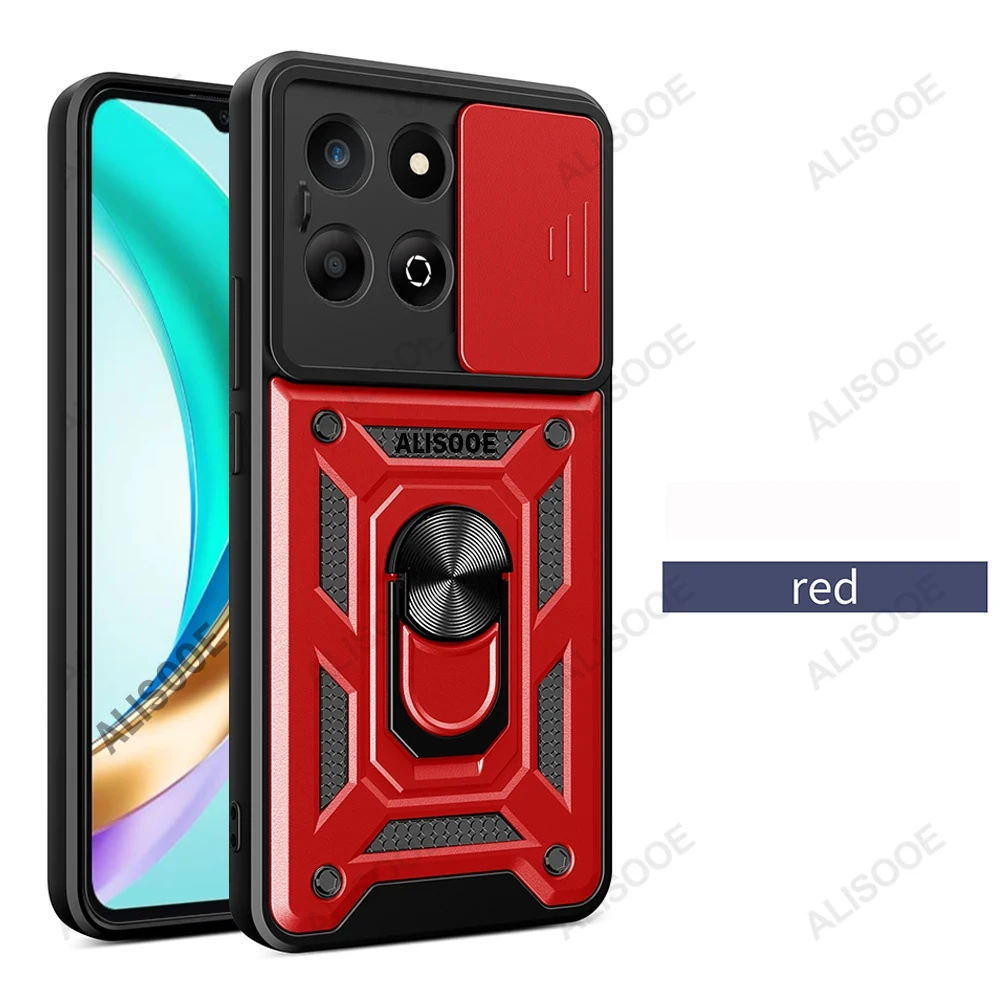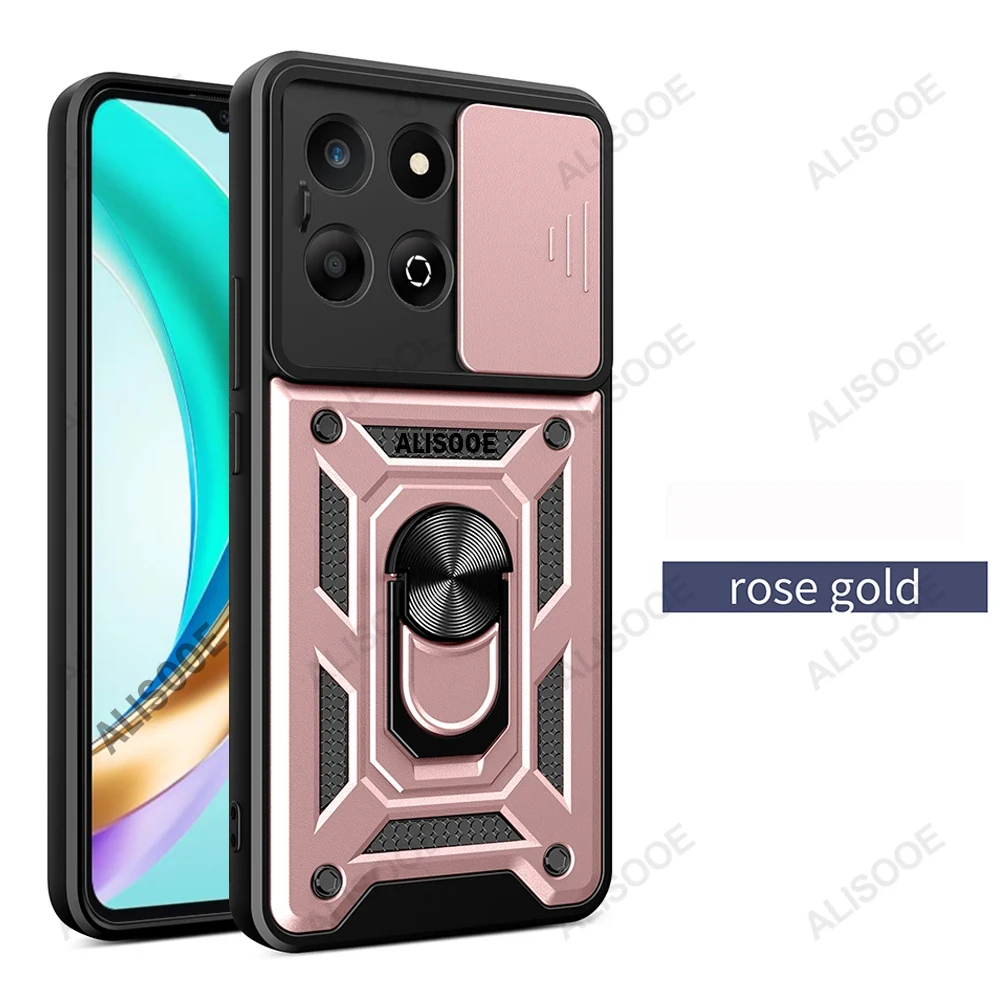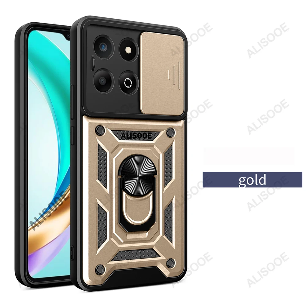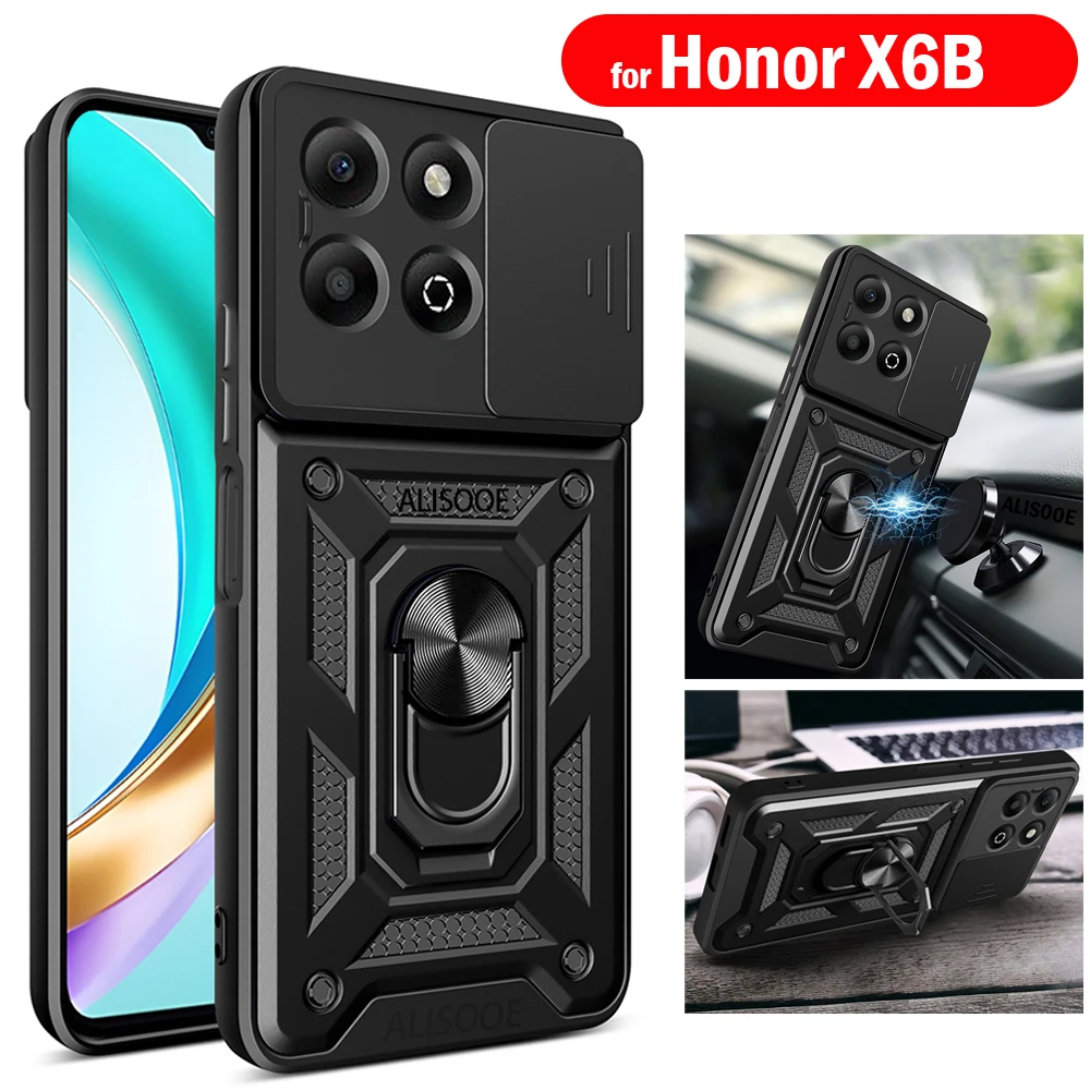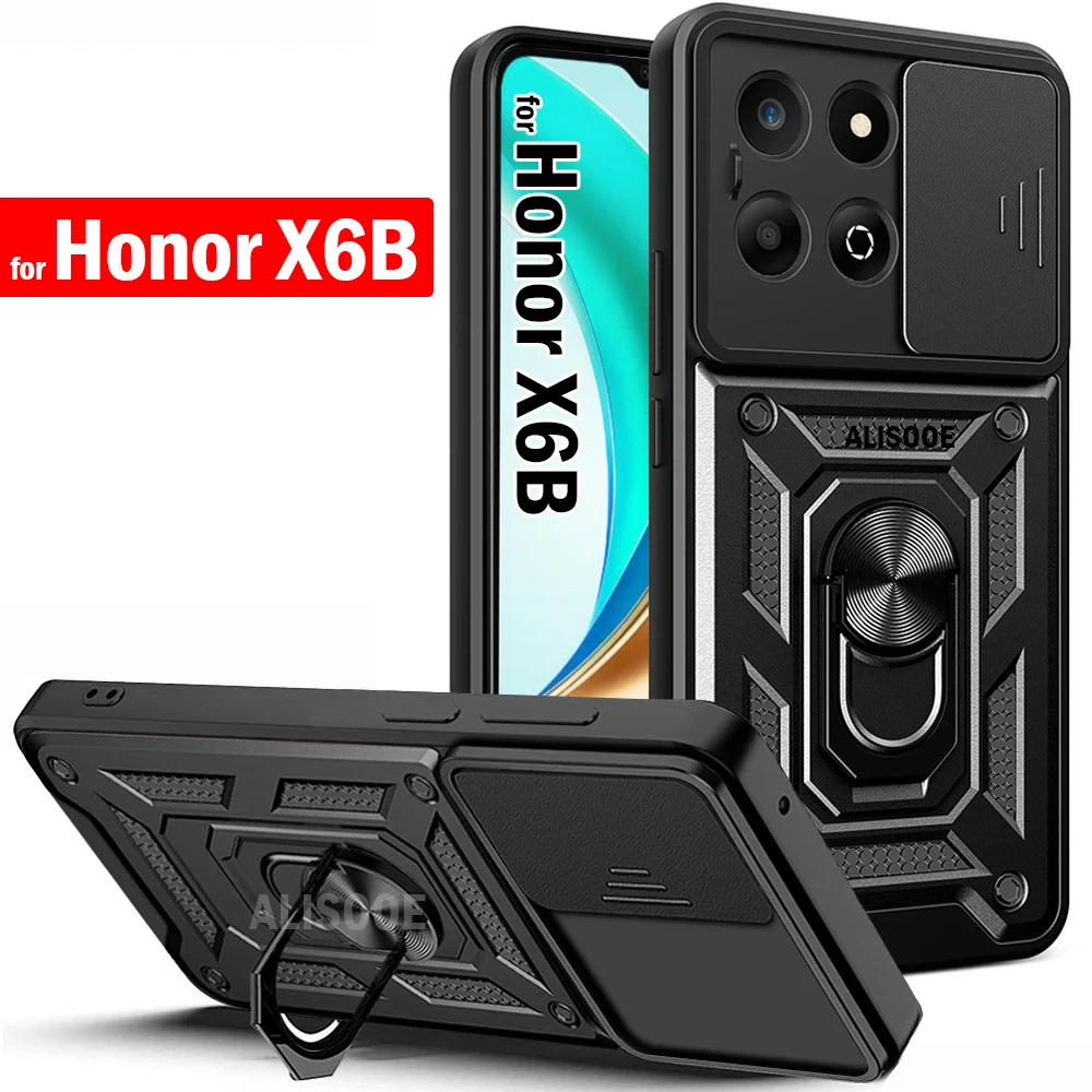 Comprar Funda deslizante para cámara Honor X6B, Funda con soporte de anillo, Funda de teléfono a prueba de golpes para Honor X6B Capa