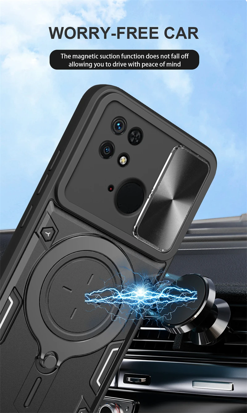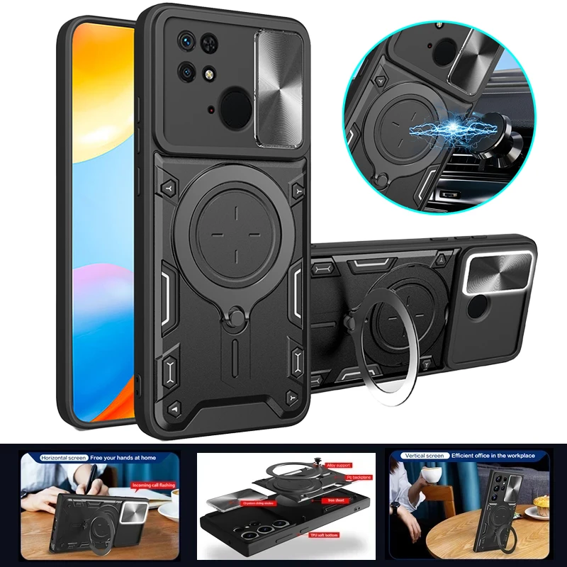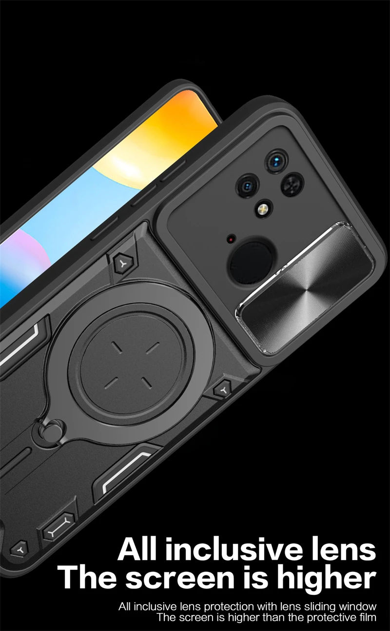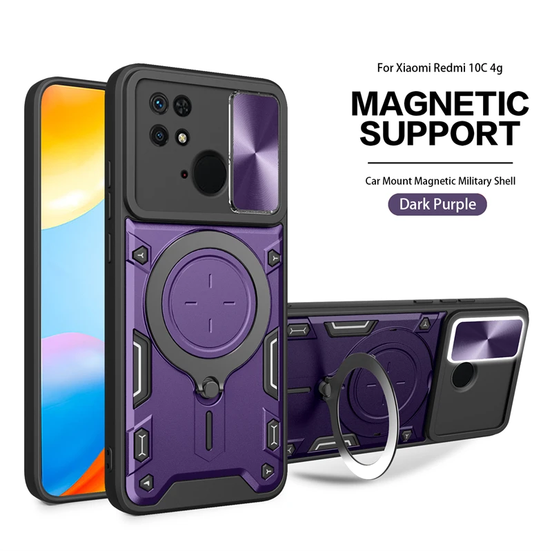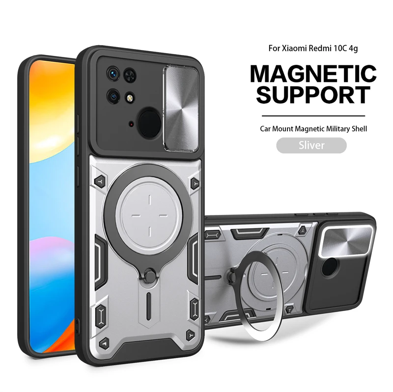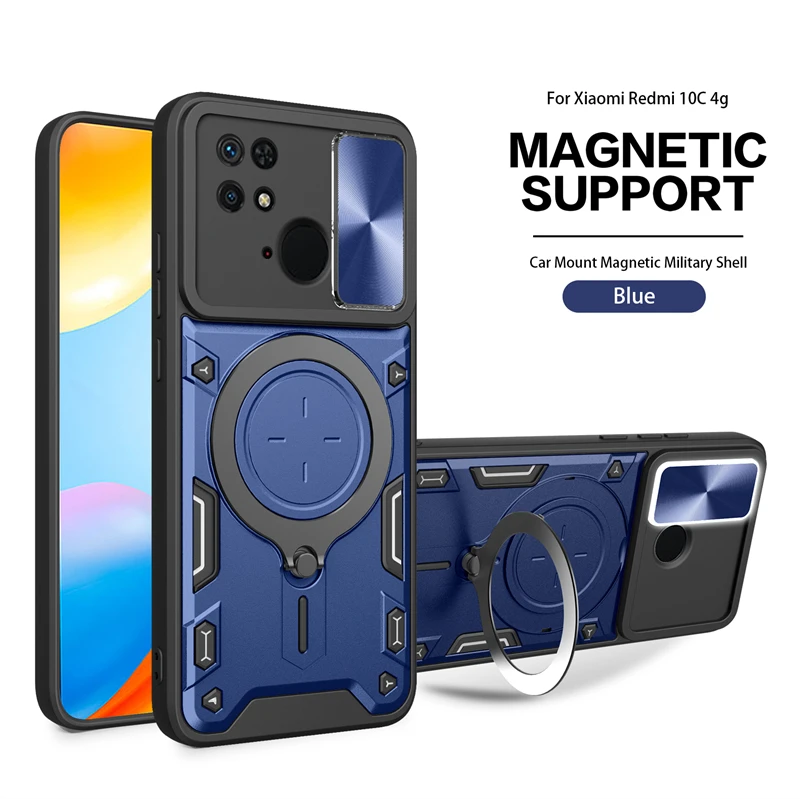 Comprar Funda deslizante para Xiaomi Redmi 10C, protector de lente de cámara para Redmi 10C, 10 C, anillo de soporte para coche, cubierta trasera a prueba de golpes