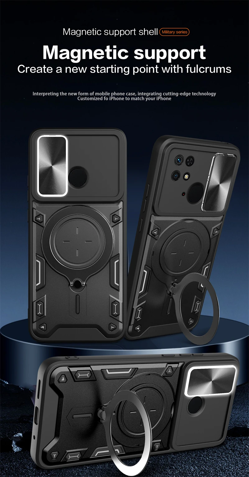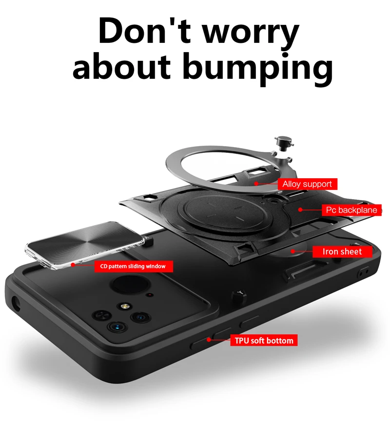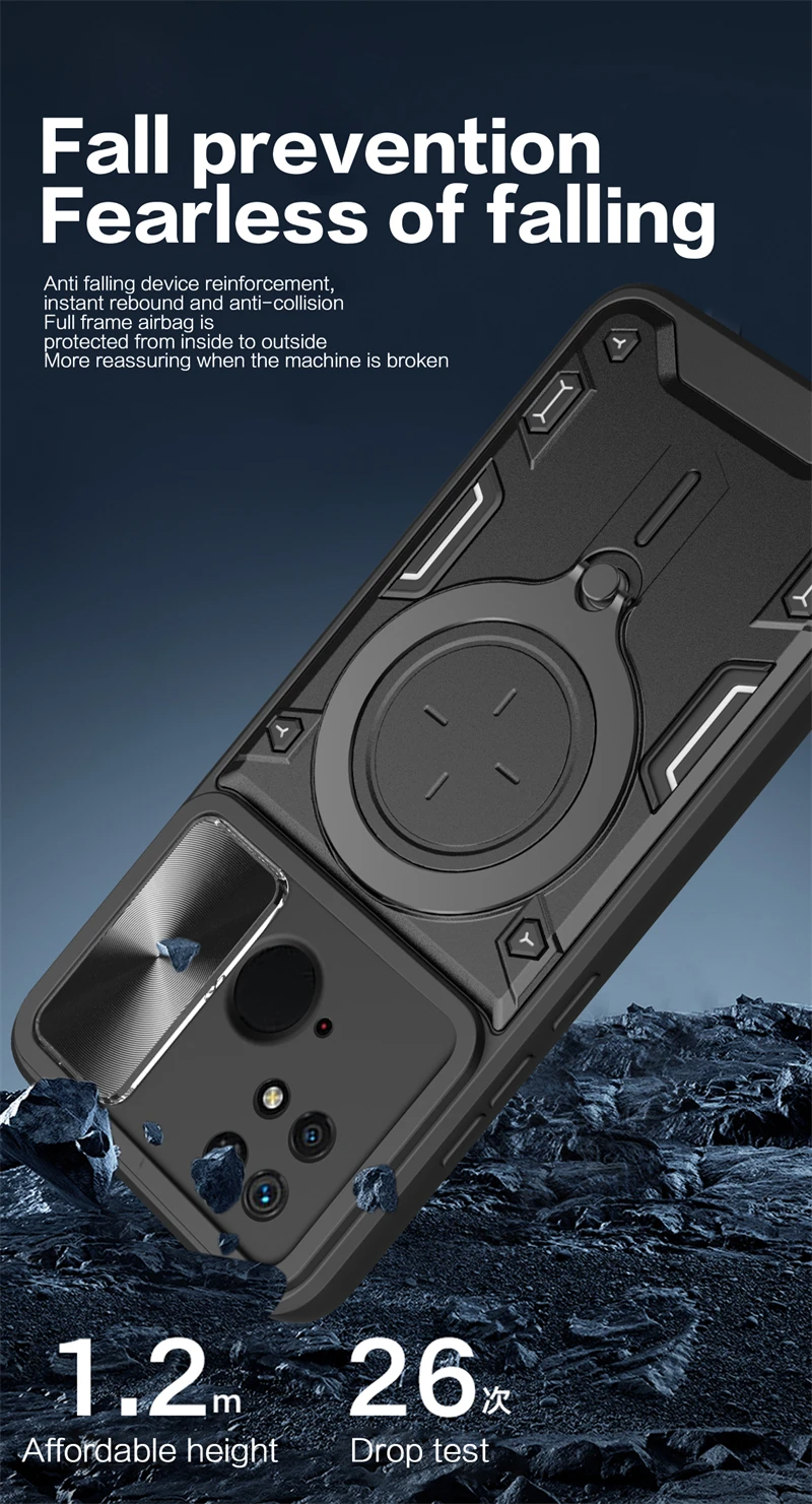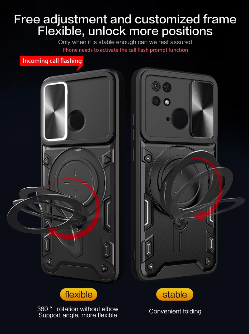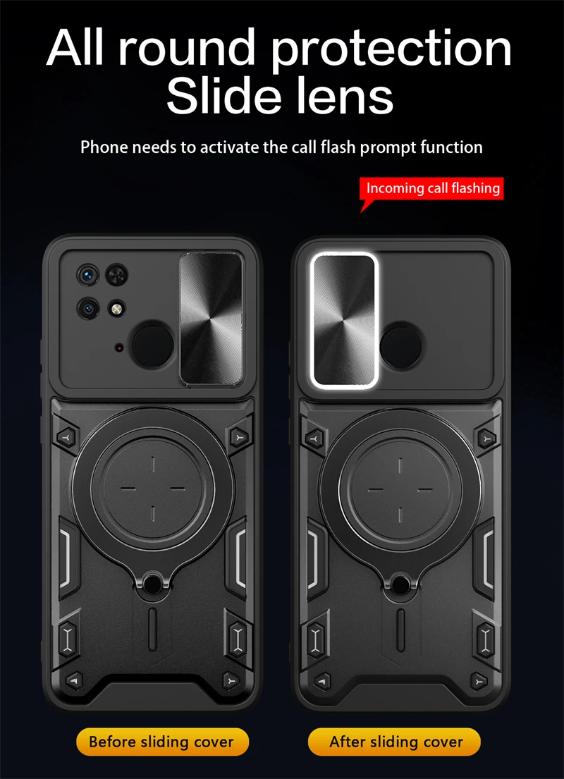 Comprar Funda deslizante para Xiaomi Redmi 10C, protector de lente de cámara para Redmi 10C, 10 C, anillo de soporte para coche, cubierta trasera a prueba de golpes