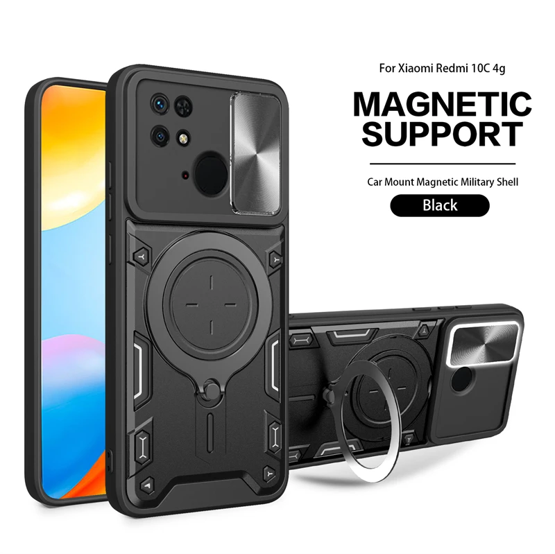 Funda deslizante para Xiaomi Redmi 10C, protector de lente de cámara para Redmi 10C, 10 C, anillo de soporte para coche, cubierta trasera a prueba de golpes