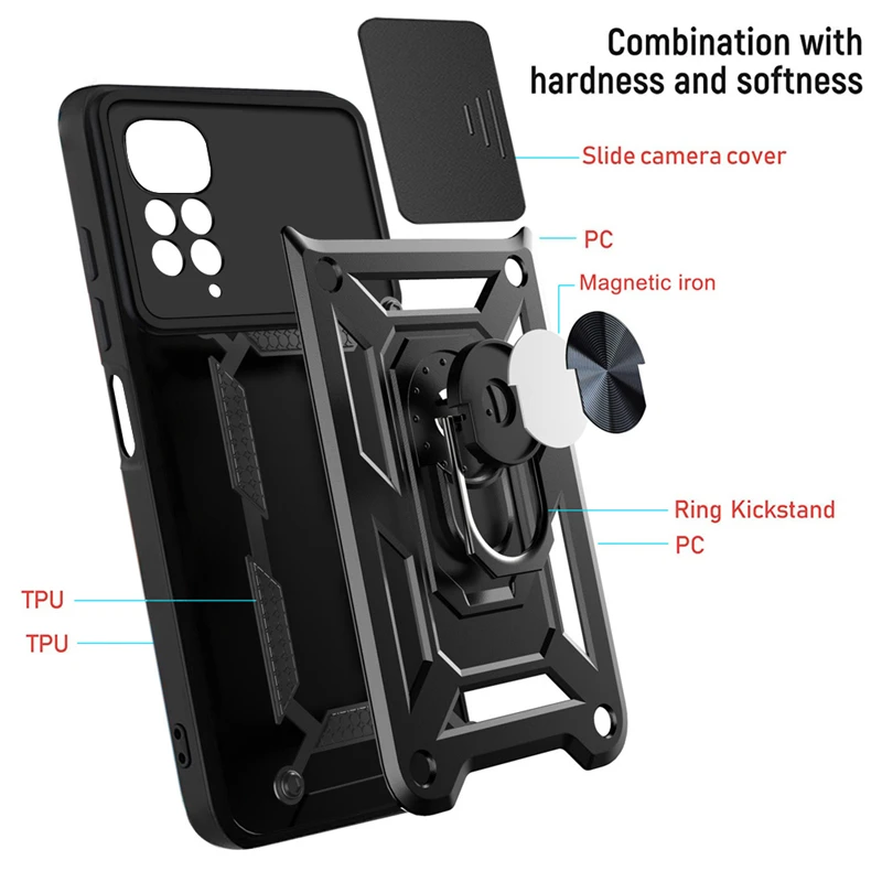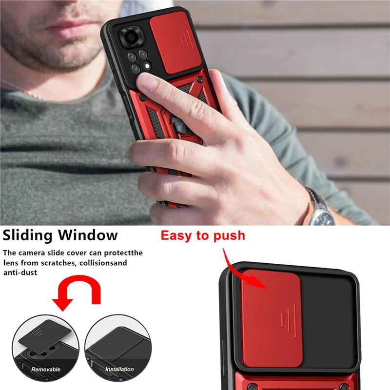 Comprar Funda deslizante para Xiaomi Redmi Note 11 Pro 5G, protector de lente de cámara para Redmi Note 11 11S, soporte magnético, armadura trasera