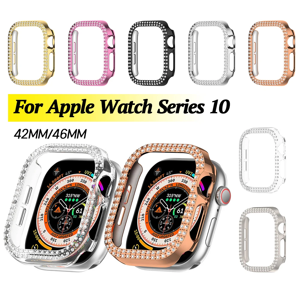Comprar Funda de diamante para Apple Watch Series 10, cubierta de PC, Protector de pantalla de reloj, marco de protección a prueba de polvo para iWatch Series 10, 42MM/46MM