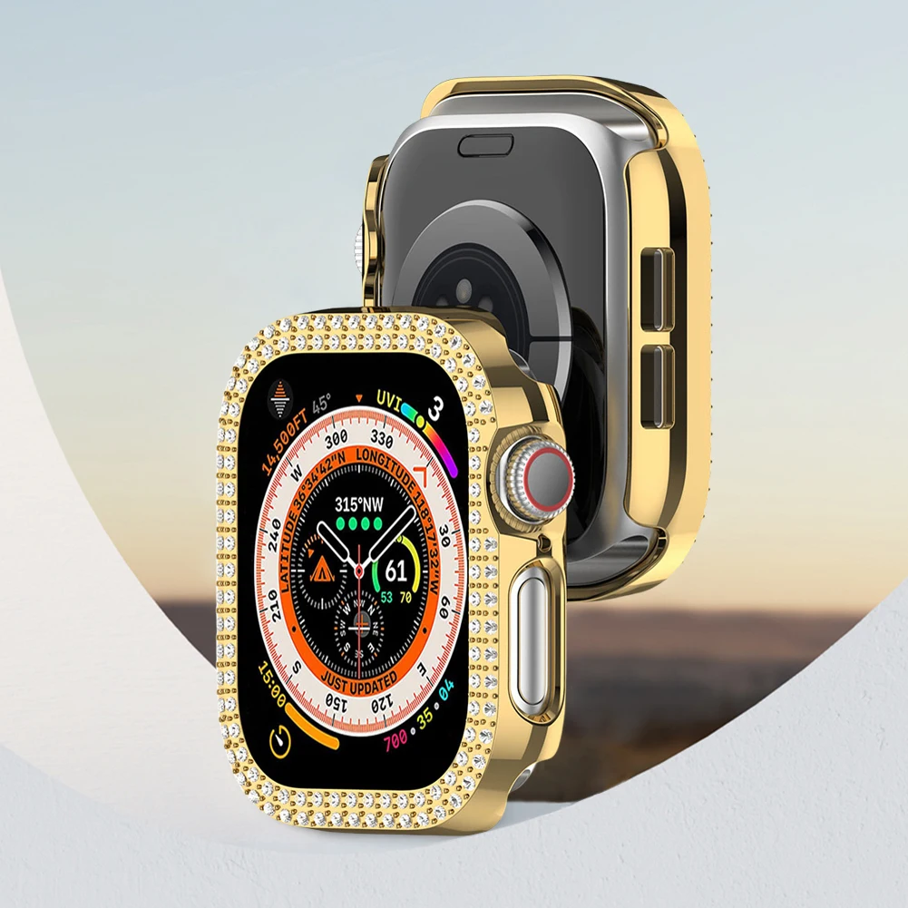 Caja de reloj de PC de doble diamante Marco de protección anticaída Protector de pantalla de reloj antiarañazos Compatible con Apple Watch Series 10 42MM/46MM