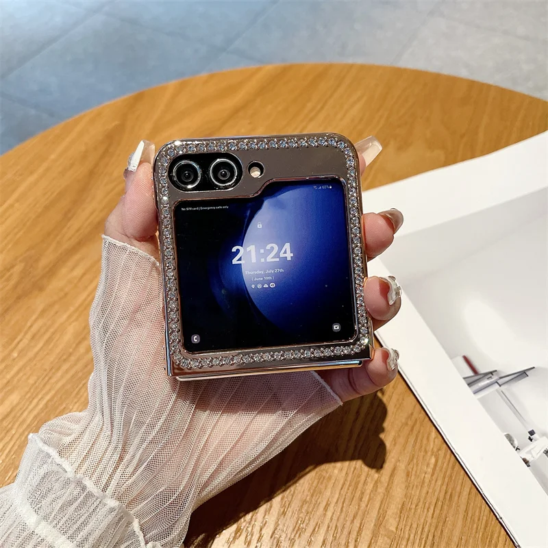 Funda de diamantes galvanizada rosa para Samsung Galaxy Z Flip 6 5, cubierta a prueba de golpes con purpurina para Samsung Z Flip 5 6