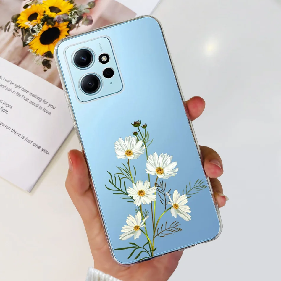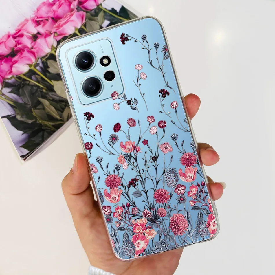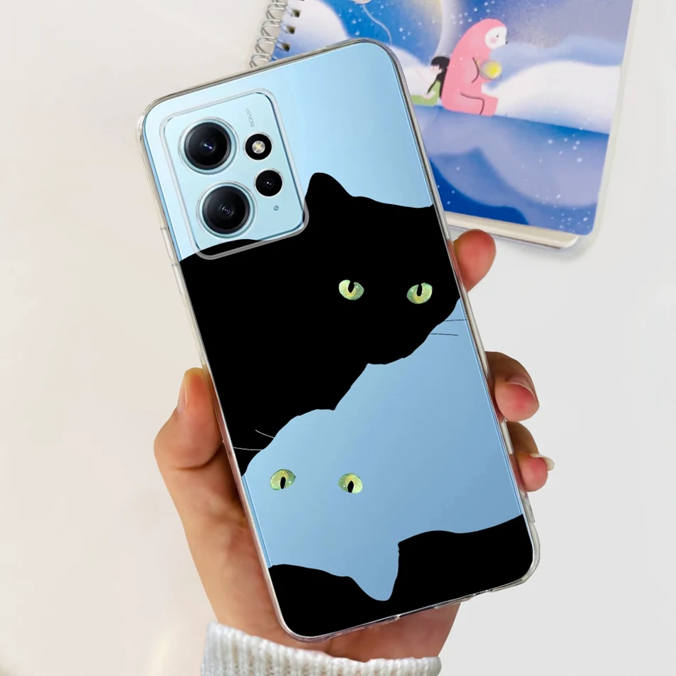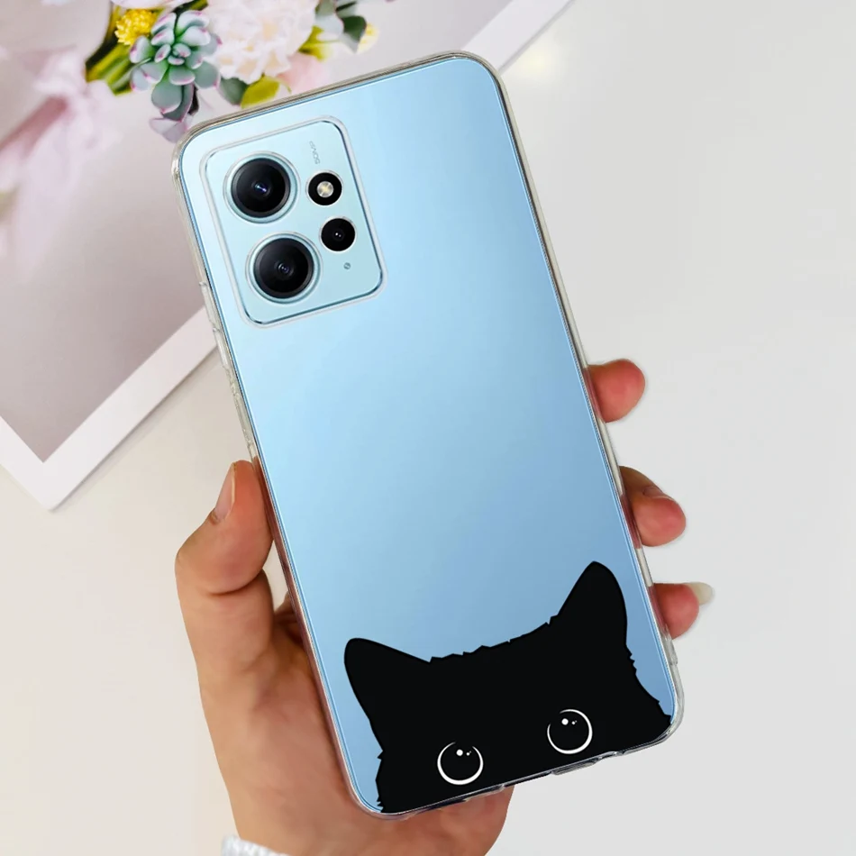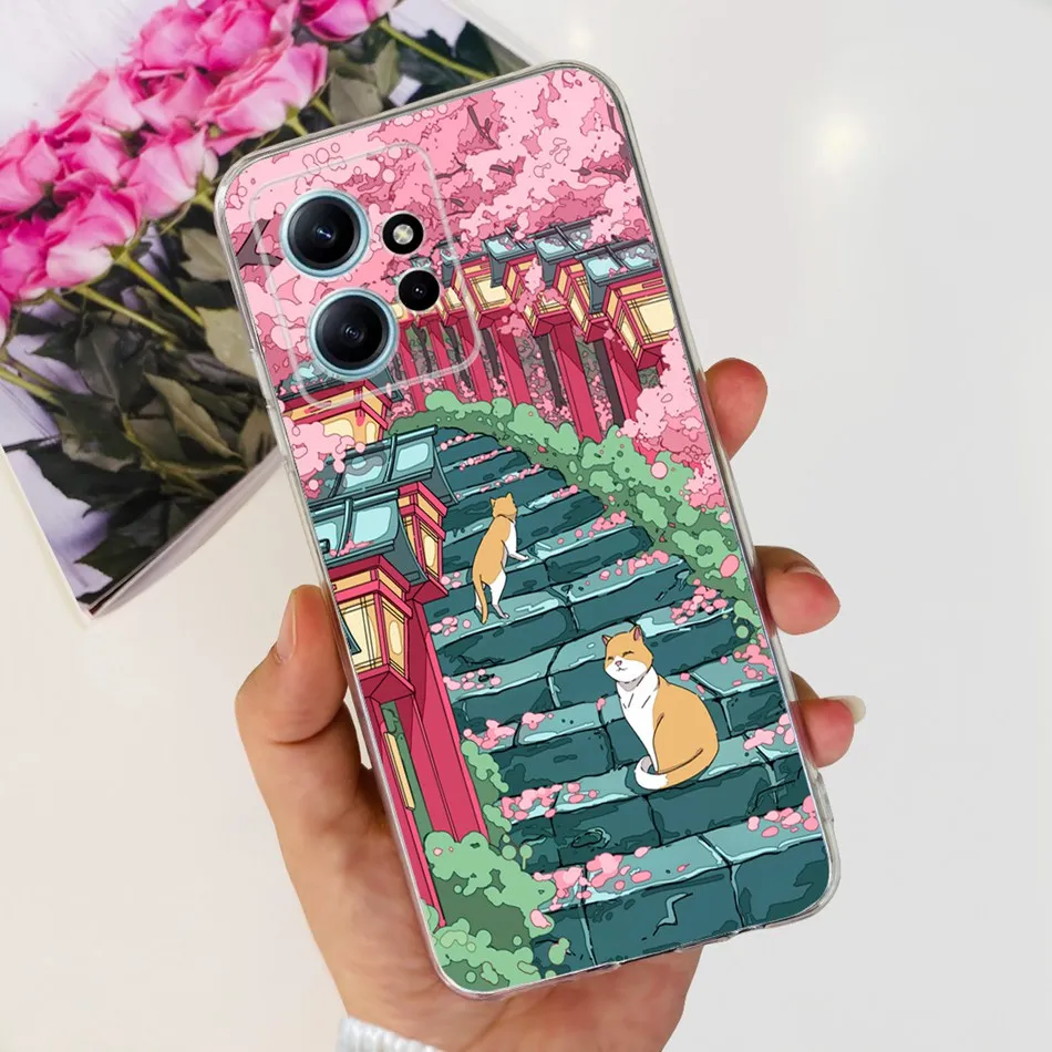 Funda con dibujo de gato y flores para Xiaomi Redmi Note 12 4G, carcasa suave de silicona TPU para Redmi Note 12 4G, parachoques Global