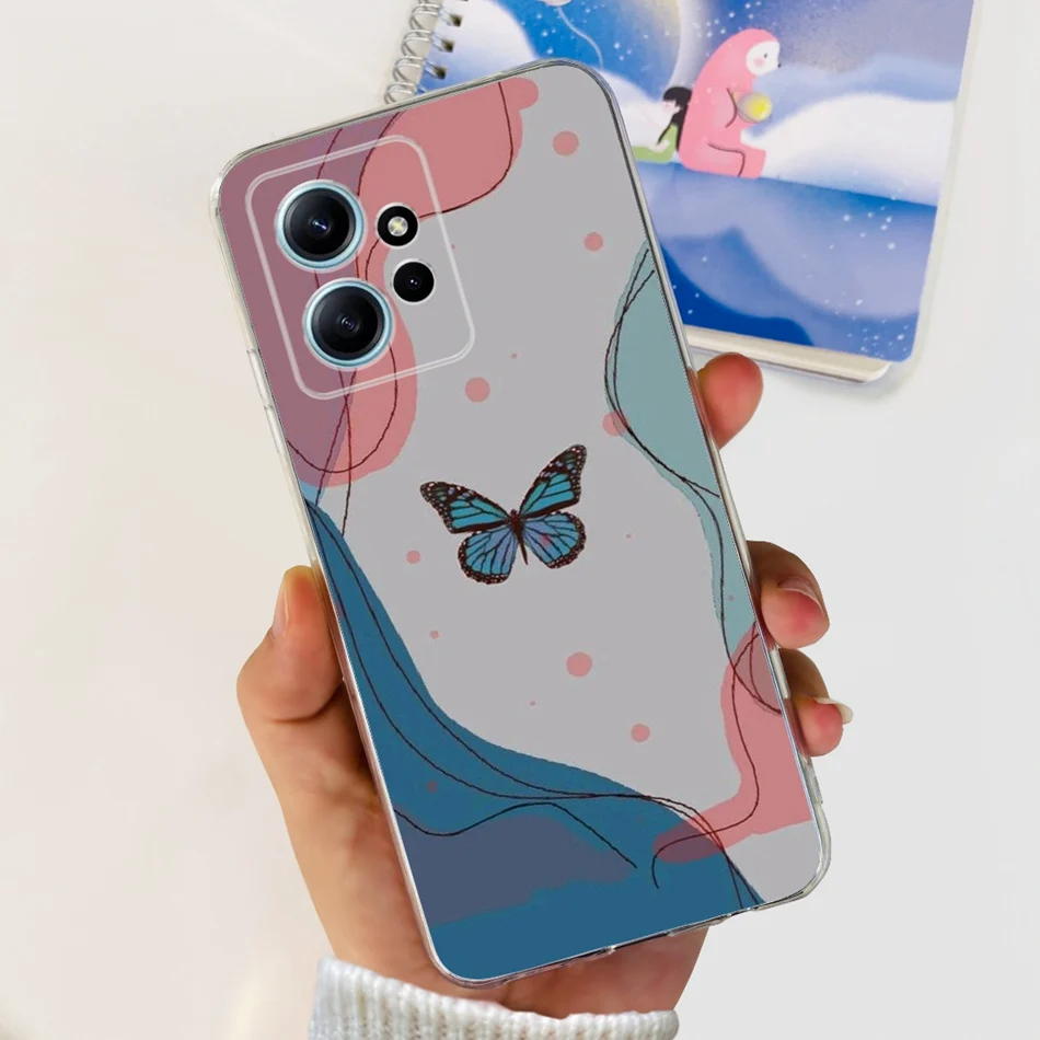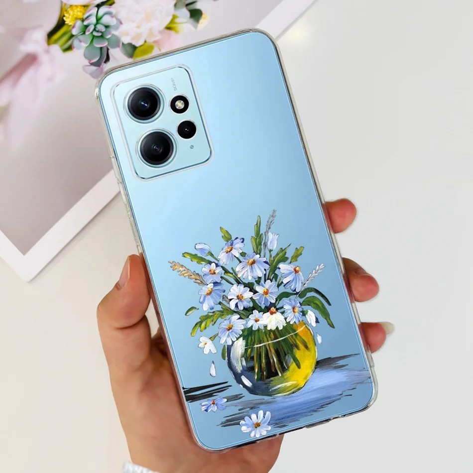 Linda flor gato pintado caso para Xiaomi Redmi Note 12 4G suave silicona TPU teléfono cubierta para Redmi Note12 4G Global parachoques