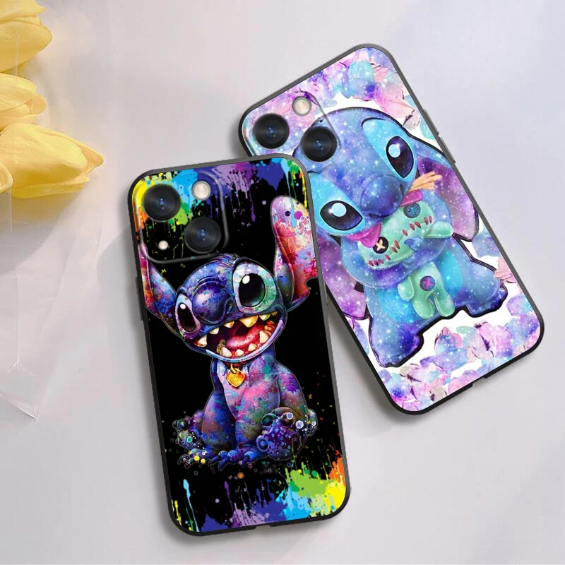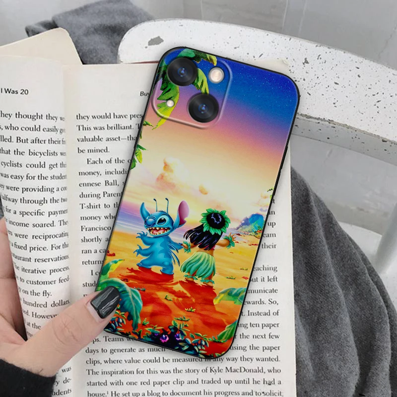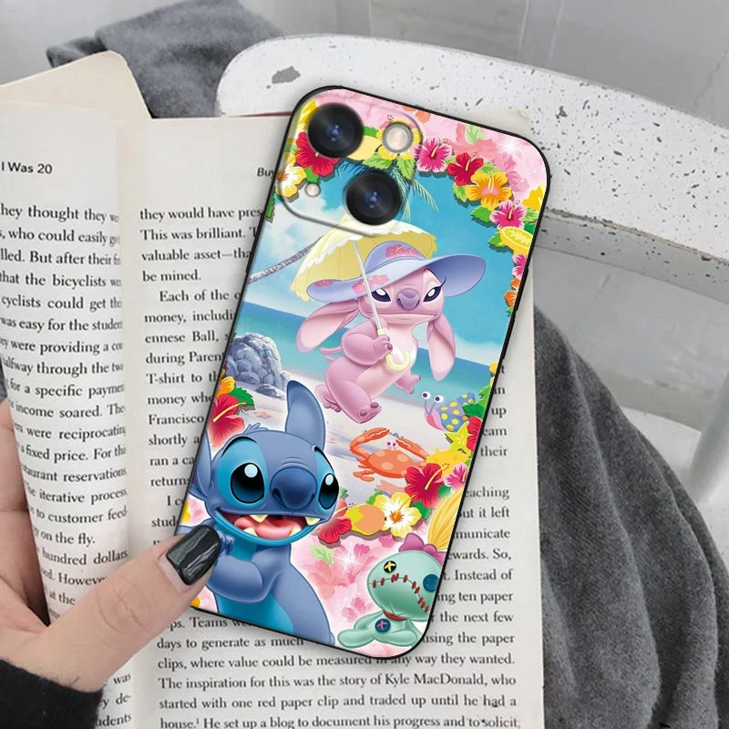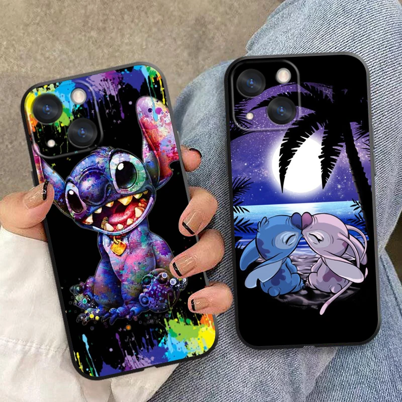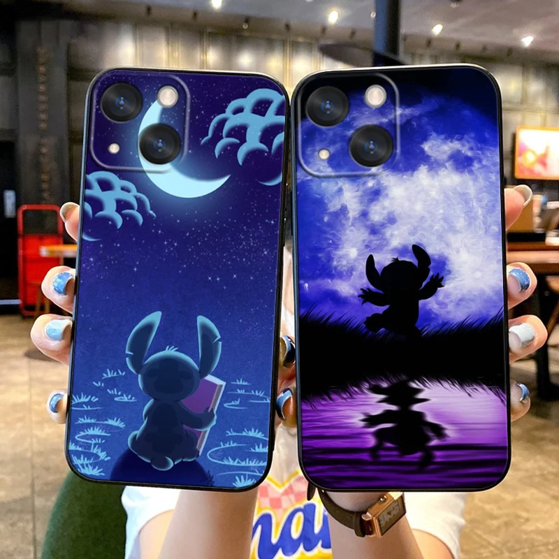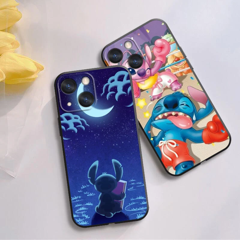 Comprar Funda de dibujos animados Lilo Stitch para Apple iPhone, funda suave negra para 15 14 13 12 11 Mini XS XR X 6S 6 Pro Max Plus