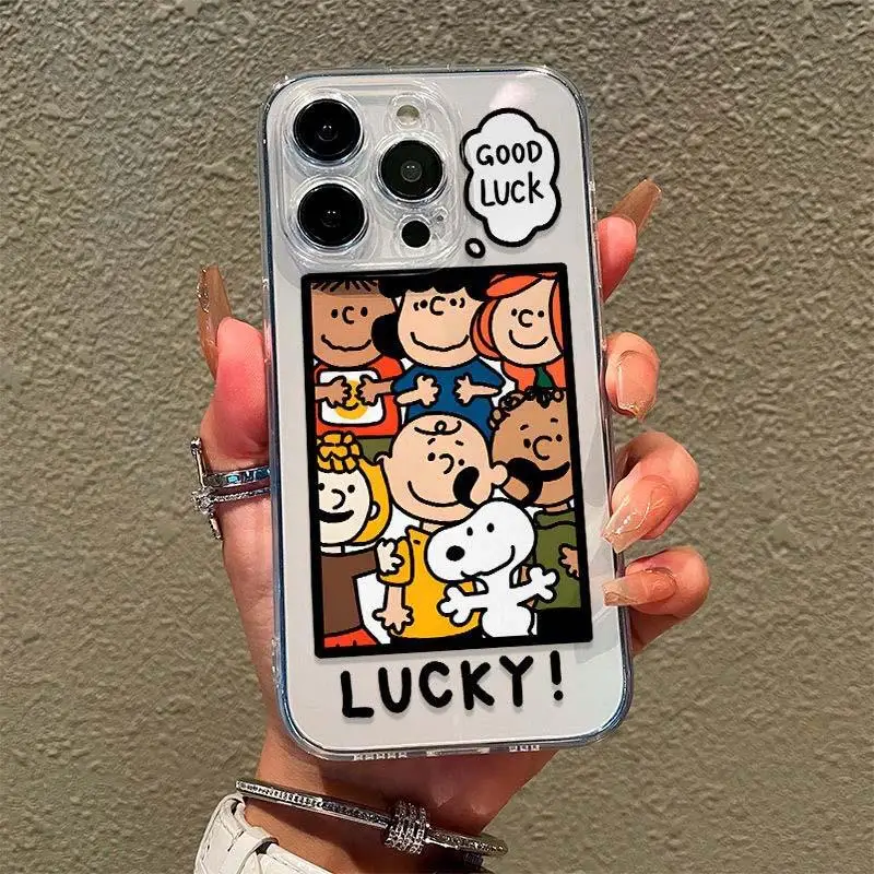 Comprar Funda de dibujos animados de Snoopy de la suerte para Samsung Galaxy S24 Ultra S23 Note 20 A55 A35 A34 A54 A13 A32 funda de silicona suave transparente