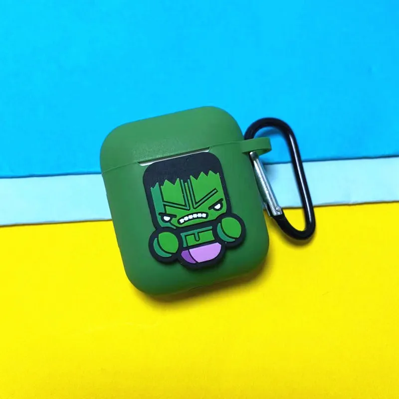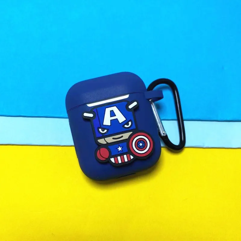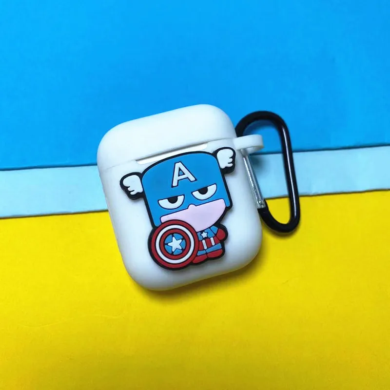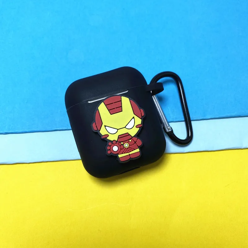 Funda de auriculares Marvel de dibujos animados para Apple Airpods 1 2 funda de auriculares Bluetooth inalámbrica suave con gancho para Airpods 1/2