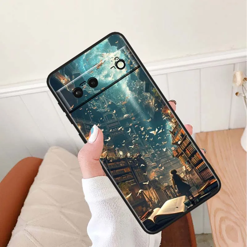 Comprar Funda con diseño artístico de estantería para Google Pixel 10 9 8 7 9a 8A 7a 6a XL Pro 5G, funda negra para teléfono
