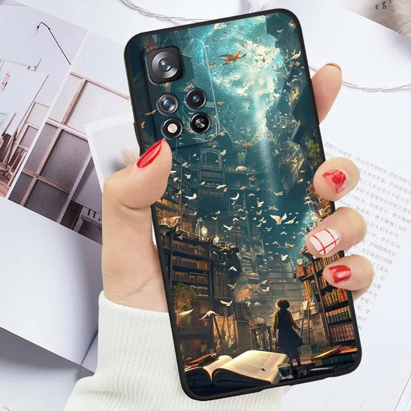 Funda de diseño artístico de estantería para Xiaomi Redmi Note 11T 11 11S 11SE 10 10T 10S 9 9 9T 8T 8 Lite Pro Plus Max funda de teléfono negra