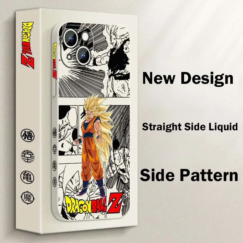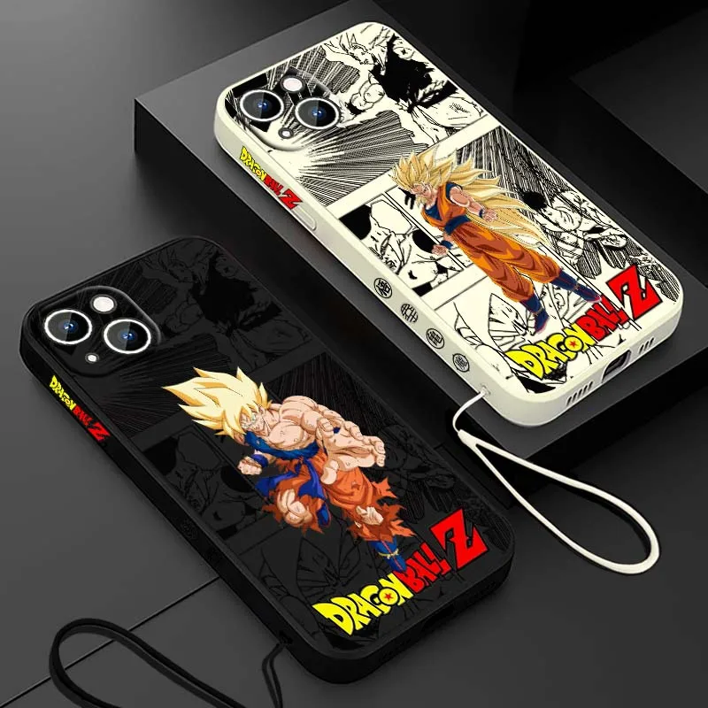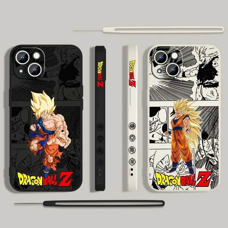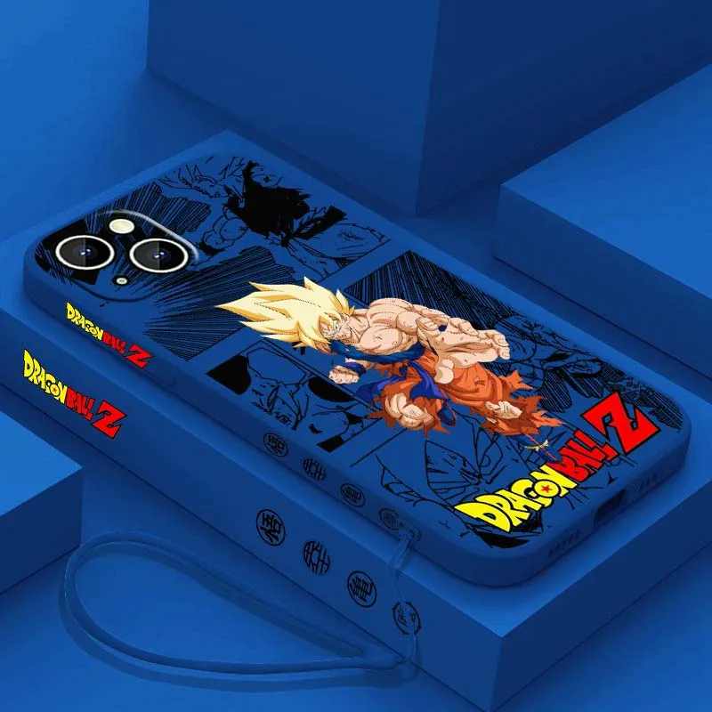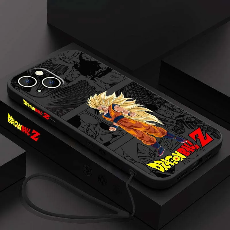 Funda divertida de Anime d-dragon Ball Saiyan para Apple iPhone 16 15 14 13 12 11 8 XR X Mini Plus Pro Max, funda de teléfono con cuerda izquierda líquida