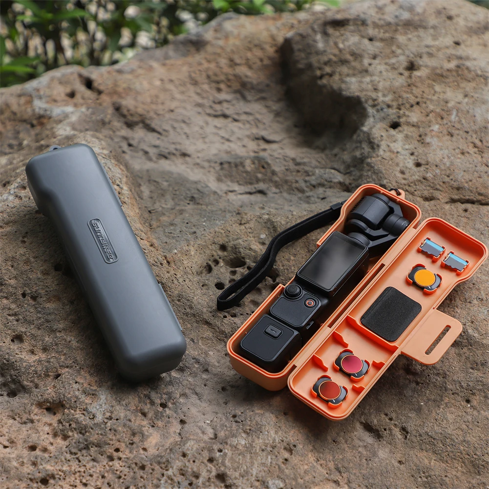 2.Conexión rápida magnética:Equipado con un sistema magnético de fijación rápida, este estuche para cámara portátil garantiza una sujeción estable con solo un simple instante.Tiene capacidad para filtros originales, lentes gran angular y filtros Sunnylife, compatibles con la mayoría de filtros de tamaños similares.