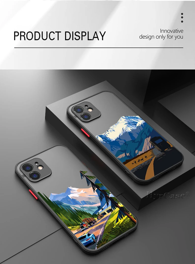 Comprar Funda dura para iPhone 13, 12, 11, 14 Pro Max, Mini, XS, XR, 7, 8 Plus, 6S, arte estético pintado a mano, paisaje de montaña, parachoques suave