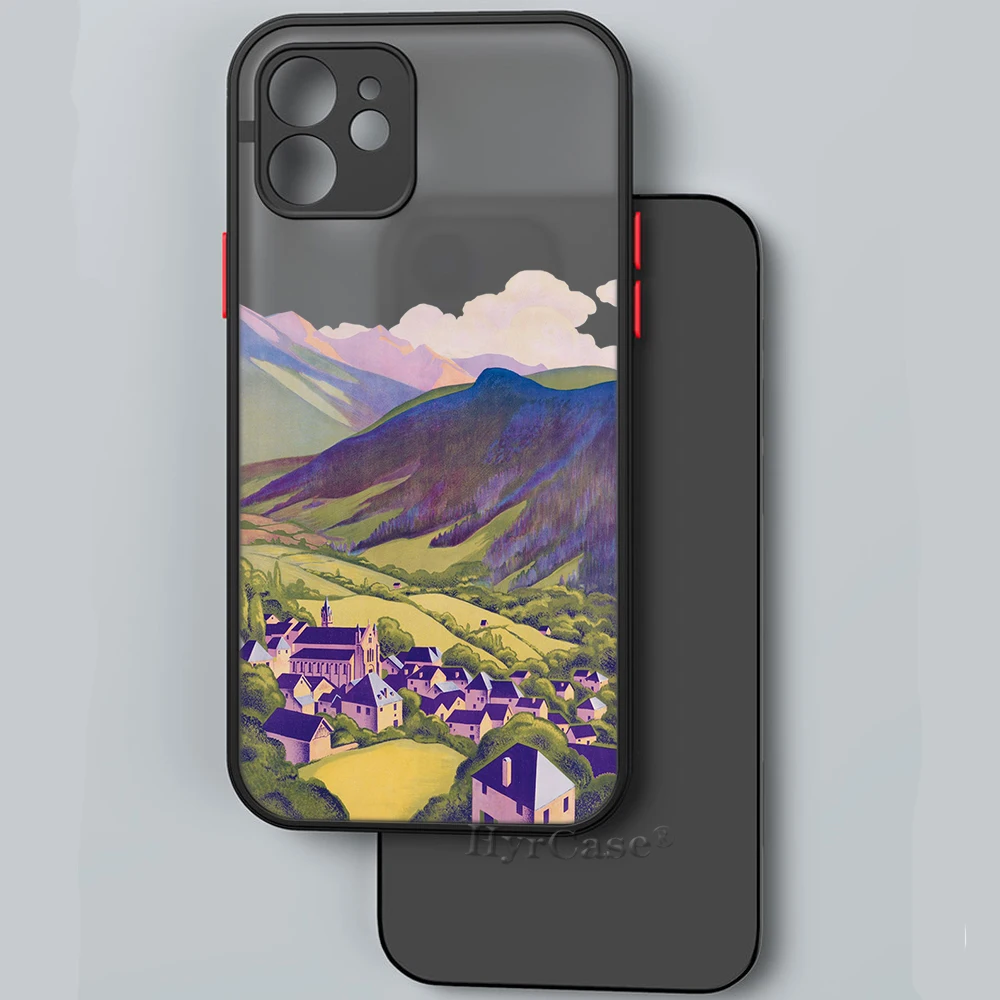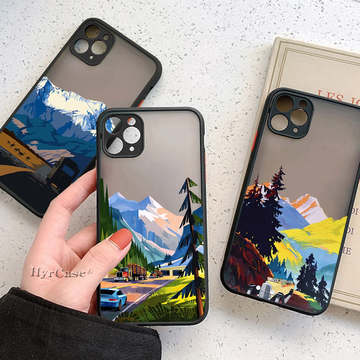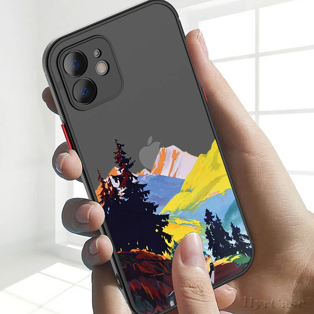 Para iPhone 13 12 11 14 Pro Max Mini XS XR 7 8 Plus 6S funda arte estético pintado a mano paisaje de montaña funda dura de parachoques suave