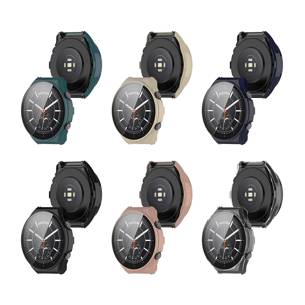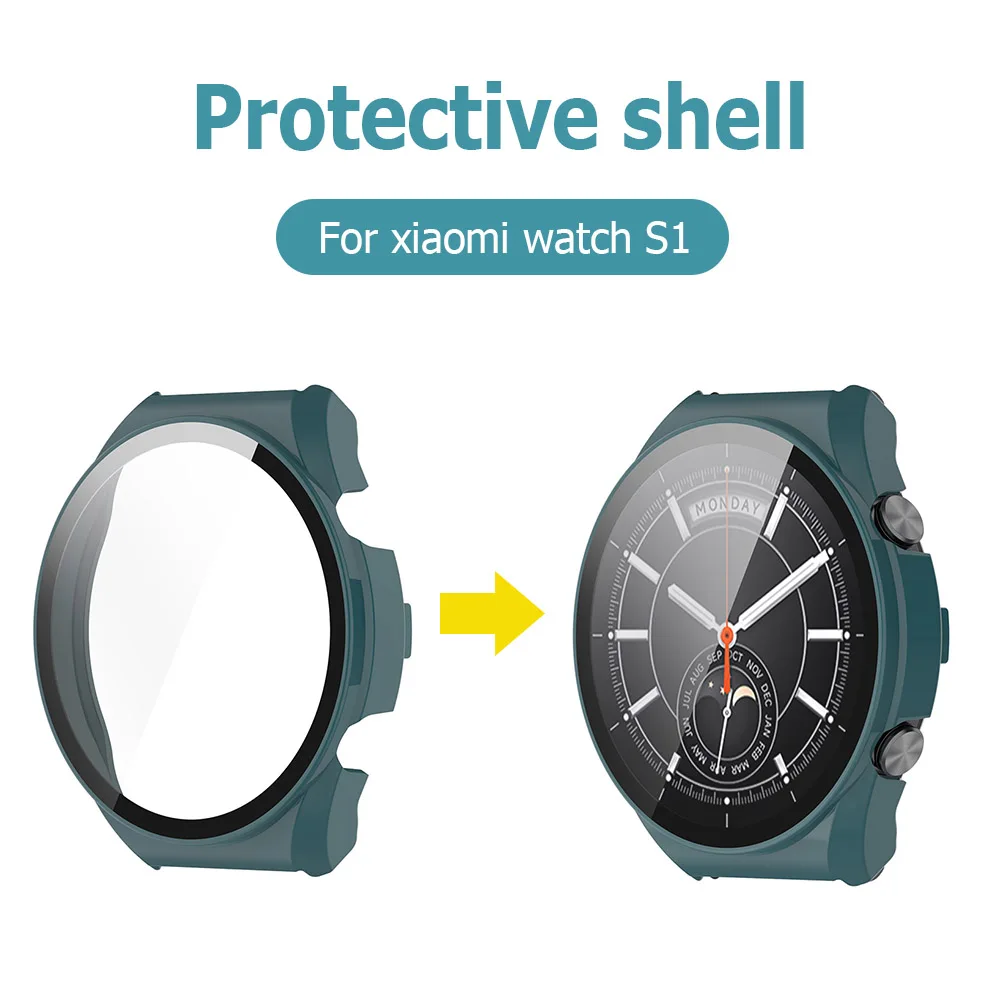 Comprar Funda dura de PC + Protector de pantalla para Xiaomi Mi Watch S1, funda antiarañazos, cristal templado, cubierta protectora para reloj inteligente