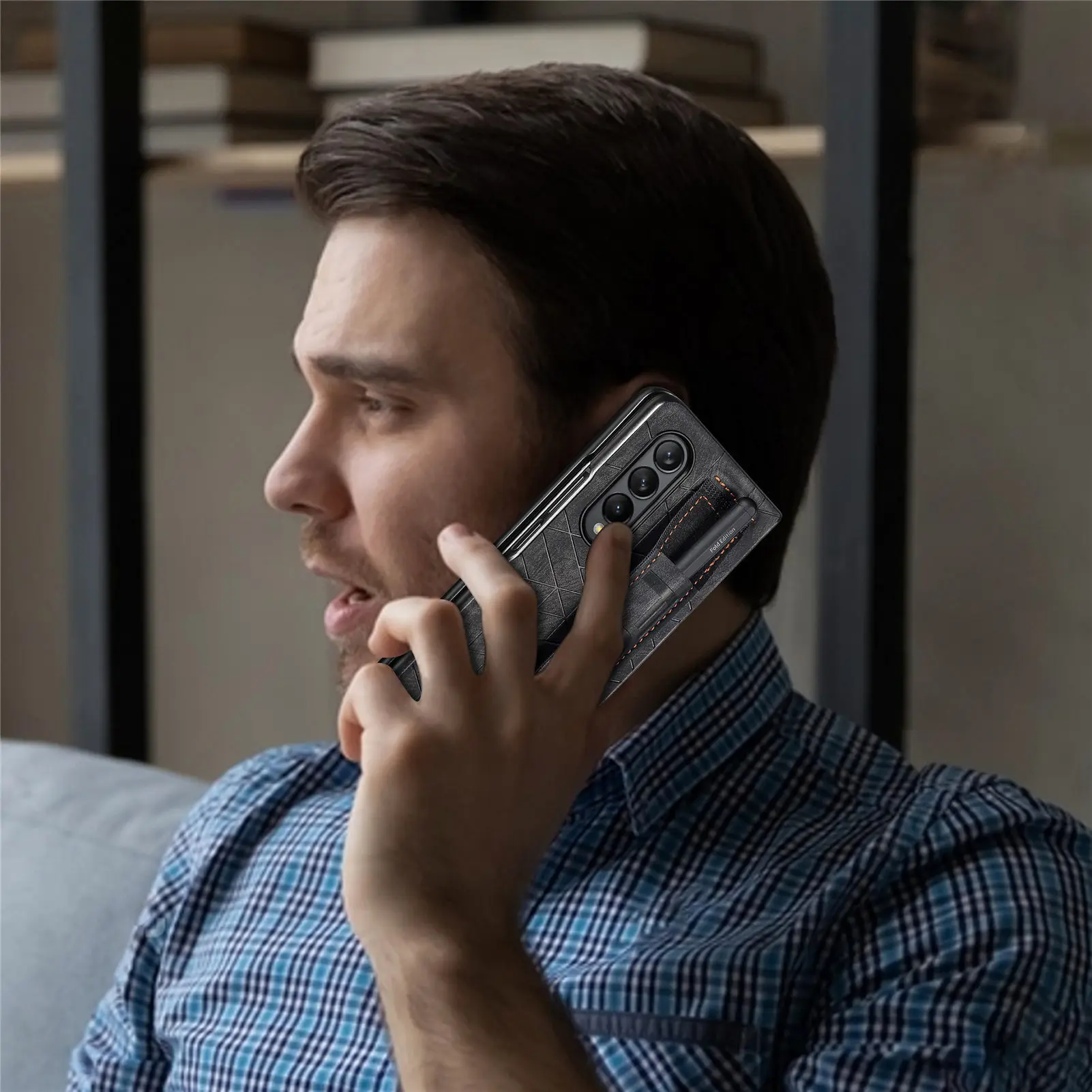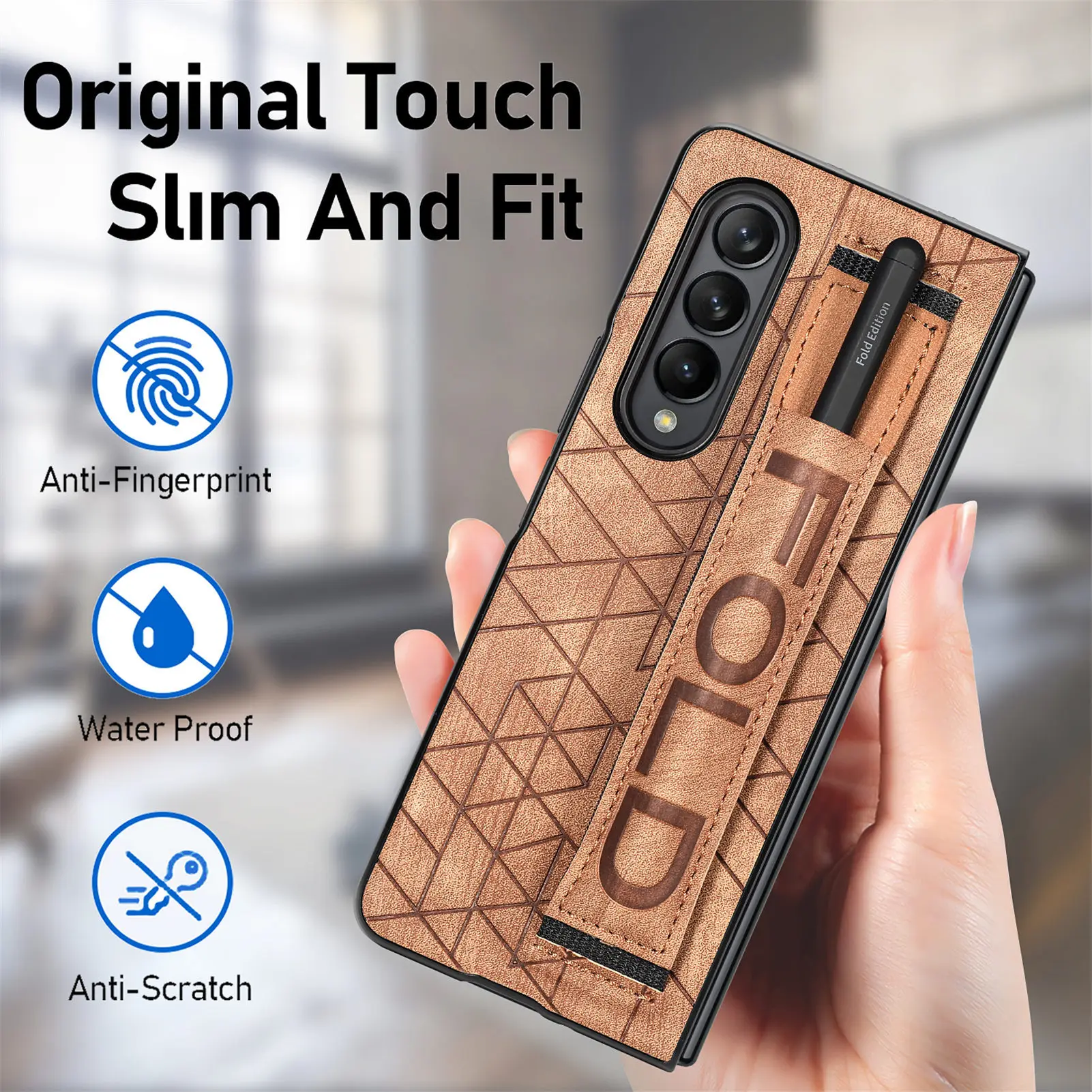 Si tiene alguna pregunta sobre la política de devoluciones, ¡no dude en contactarnos! Si el producto está dañado u otro problema causado por el proveedor, puede devolvernos el artículo en su estado original para un reembolso o un cambio. Póngase en contacto con nosotros para obtener los detalles solo en un plazo de 7 días después de recibir el paquete.Comprar Funda elástica con correa de muñeca para Samsung Galaxy Z Fold 4 3, Funda de cuero de lujo a la moda, fundas antigolpes para Fold4, Fold3, W23, sin bolígrafo