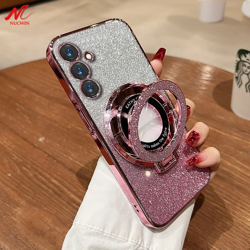 Comprar Funda de electroplaca con soporte Magsafe para Samsung A55, A54, A53, A25, A35, Galaxy S24, S23, S22, Note 20 Ultra, S21, S20 FE