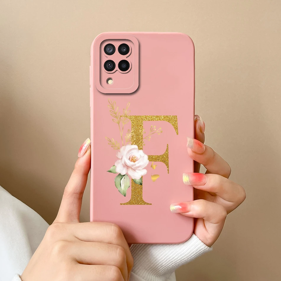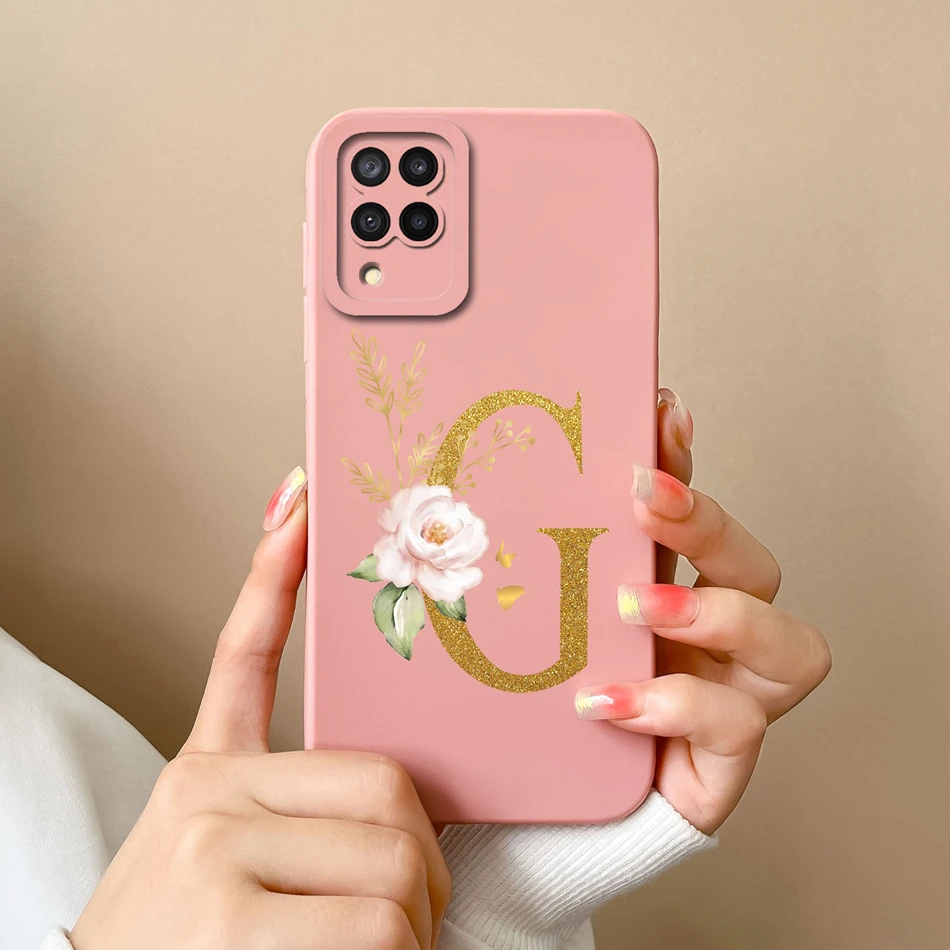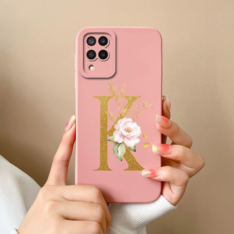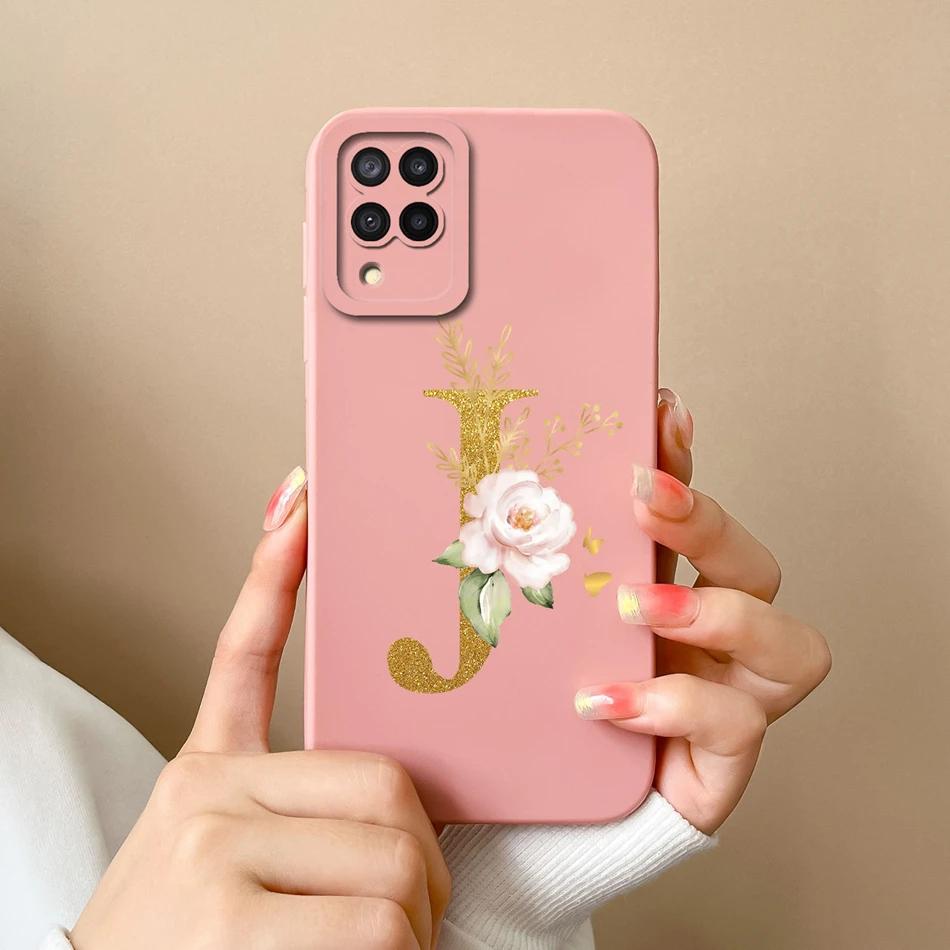 Comprar Funda elegante para Samsung M22 M32 4G 5G Rose Letter Phone Shell Lens Cover, Galaxy M32 M22 Liquid Silicone Bumper